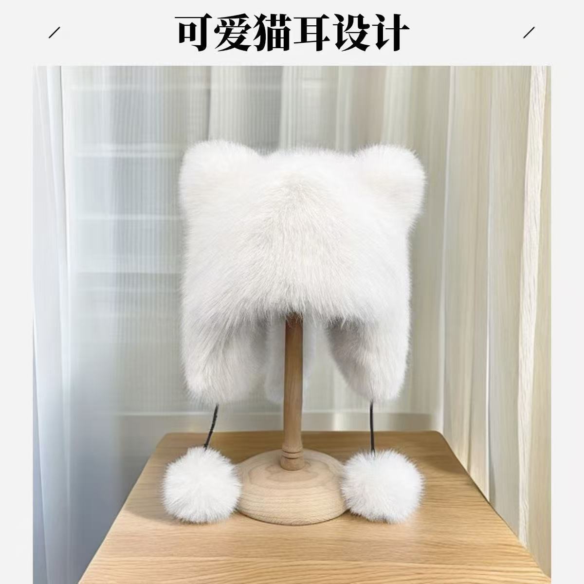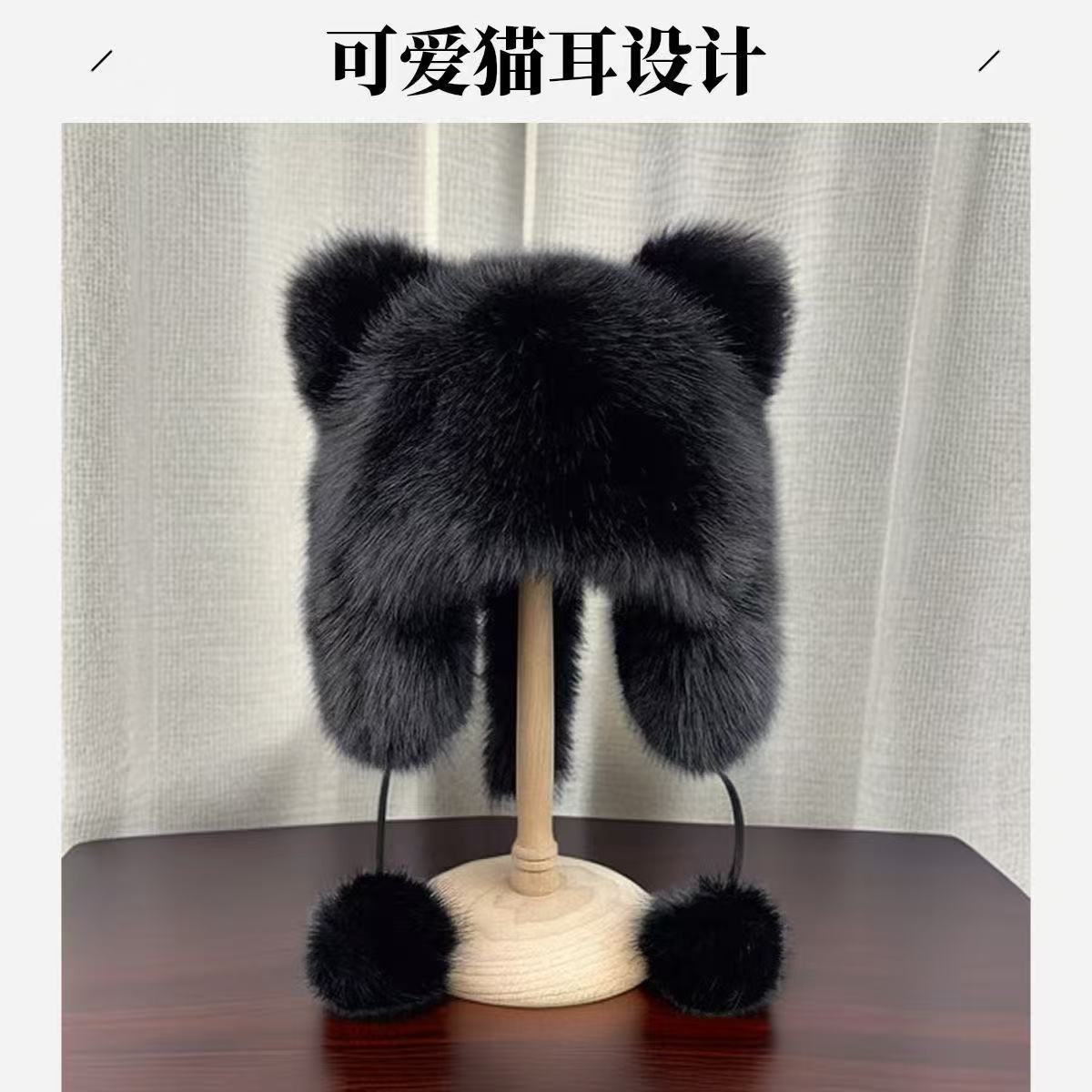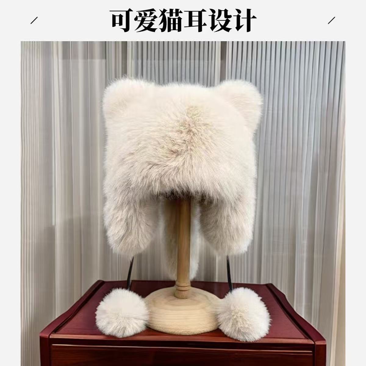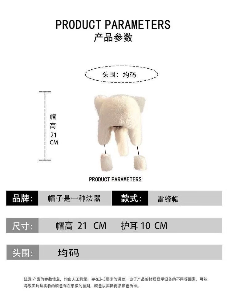 【不挑脸型❗️护耳雷锋帽】卡通立体耳朵设计,可调节帽围松紧,小尾巴设计,搞怪减龄,护耳雷锋帽子女冬季加厚保暖防风防寒毛绒帽子QQ
