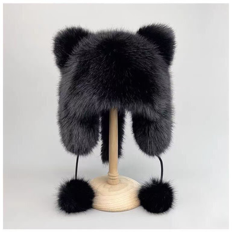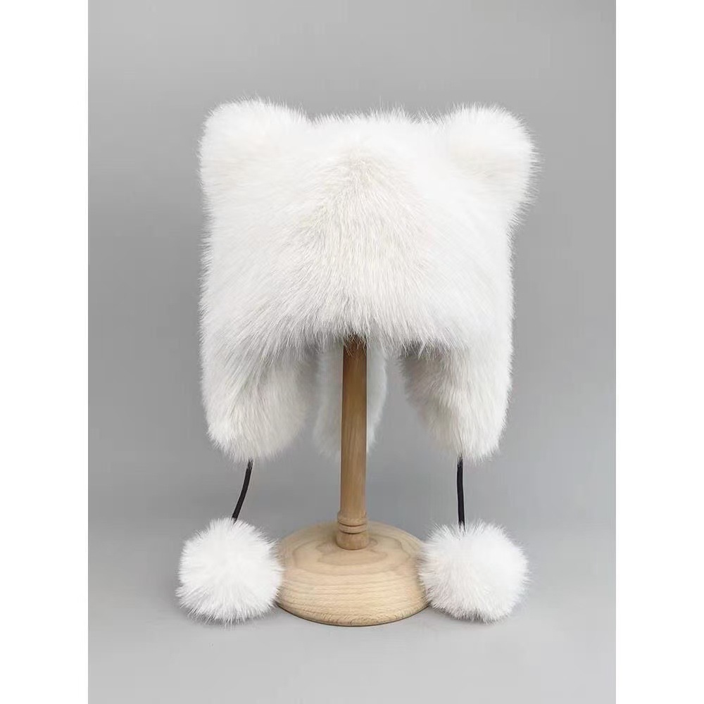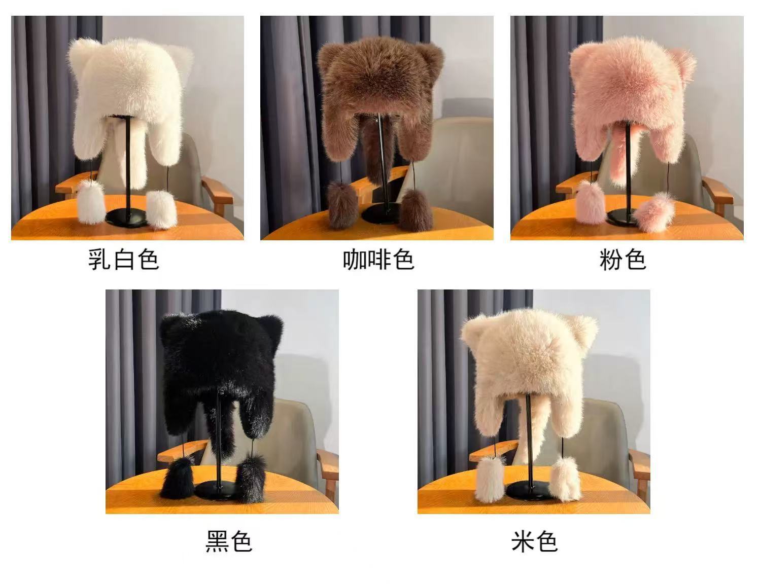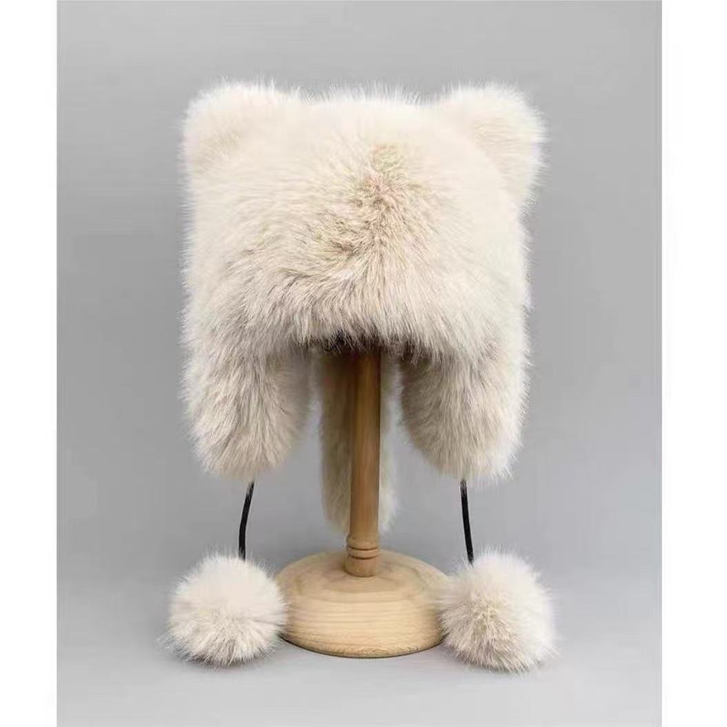 【不挑脸型❗️护耳雷锋帽】卡通立体耳朵设计,可调节帽围松紧,小尾巴设计,搞怪减龄,护耳雷锋帽子女冬季加厚保暖防风防寒毛绒帽子QQ