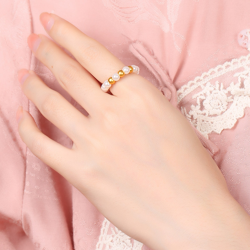 【祈愿吉品】三金生钱贝珠戒指富甲一方黄金戒圈指环