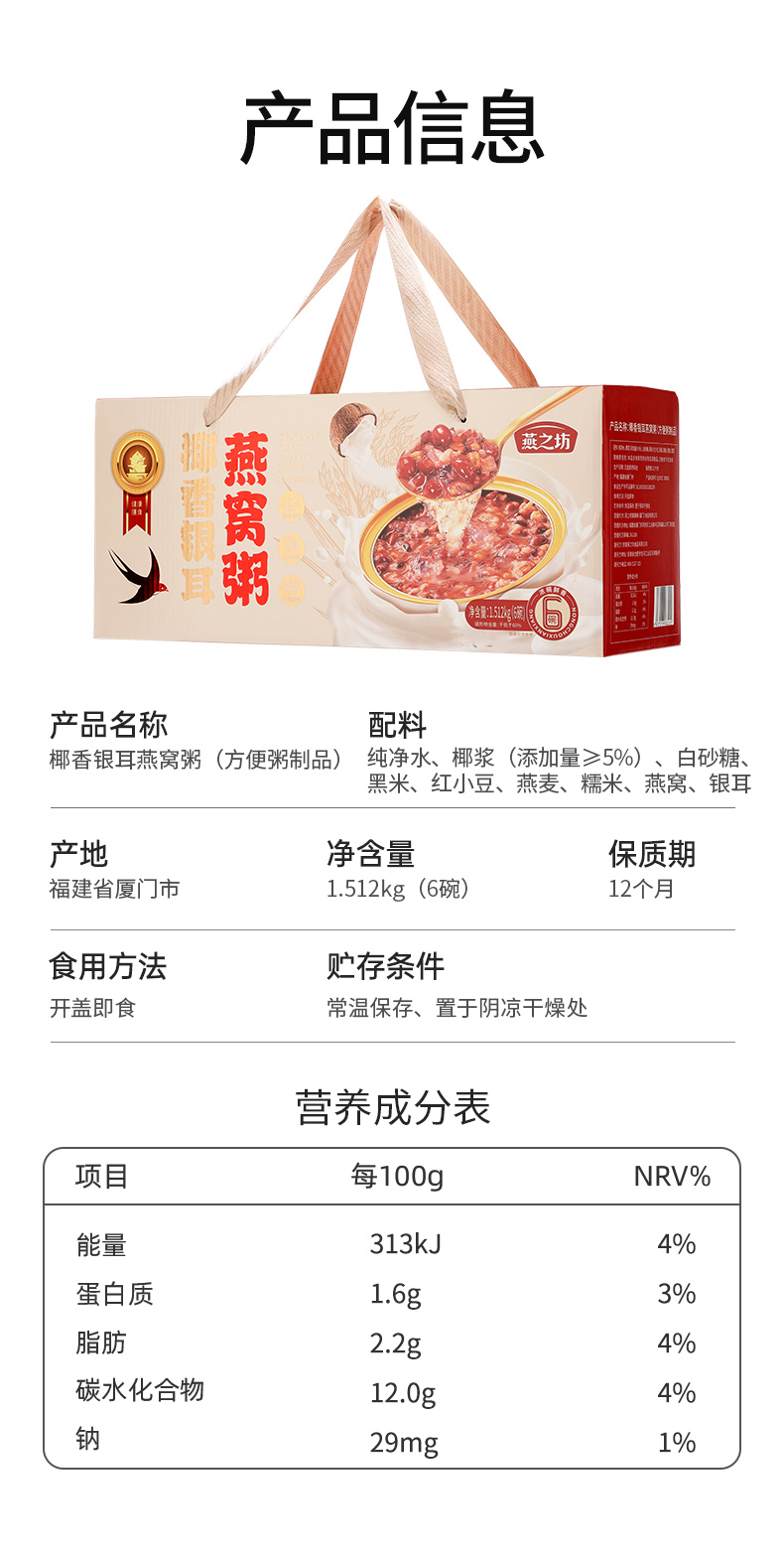 【商城专属】燕之坊 椰香银耳燕窝粥1.512kg