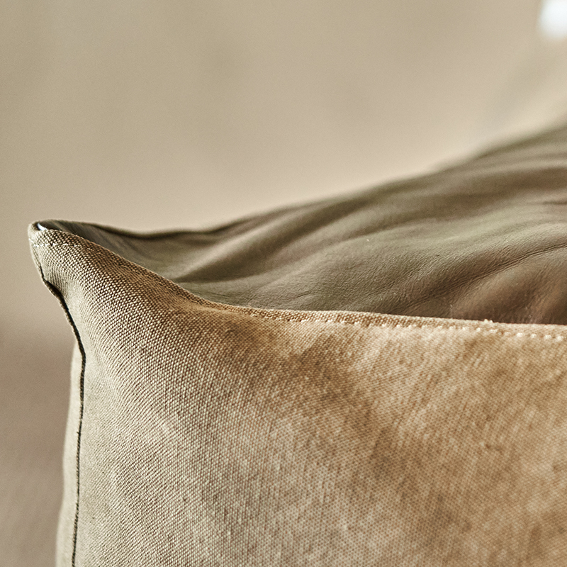 主材:绿色水洗帆布/A皮/新浅棕色玛斯特皮/真皮字母/黑色胶脚钉