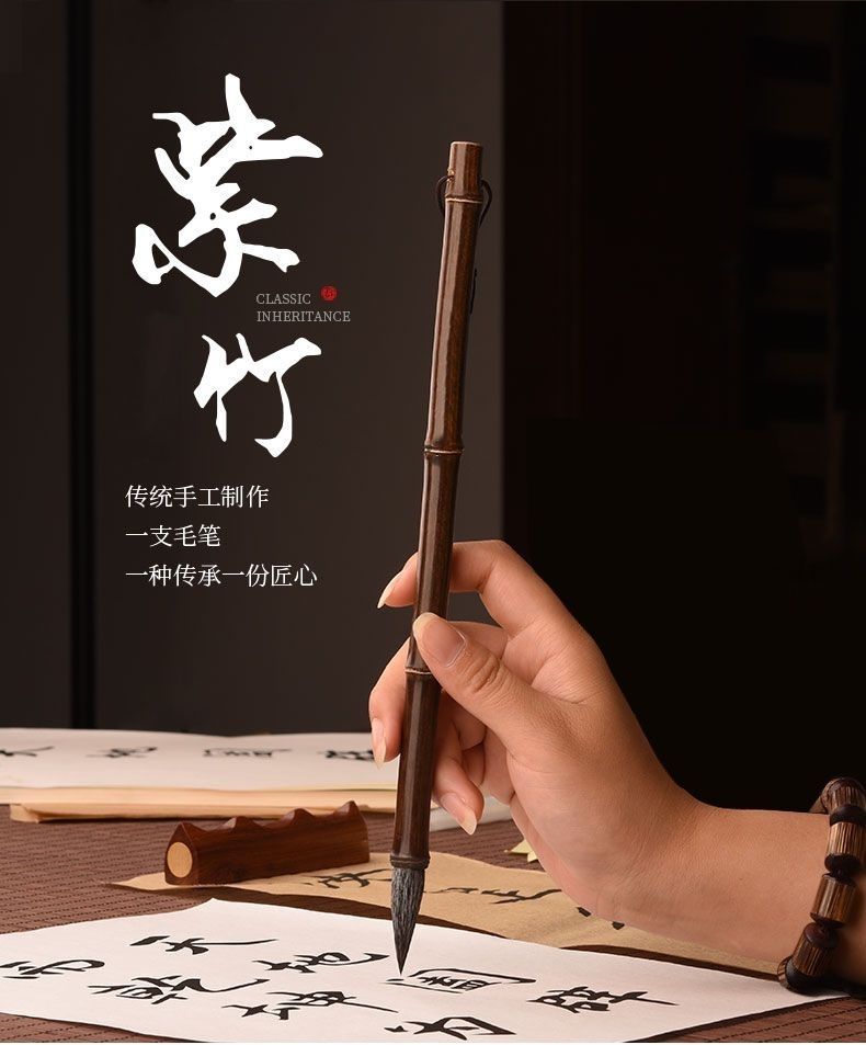 古风紫竹毛笔狼毫成人专业级书法国画兼毫羊毫中楷毛笔篆楷隶行书