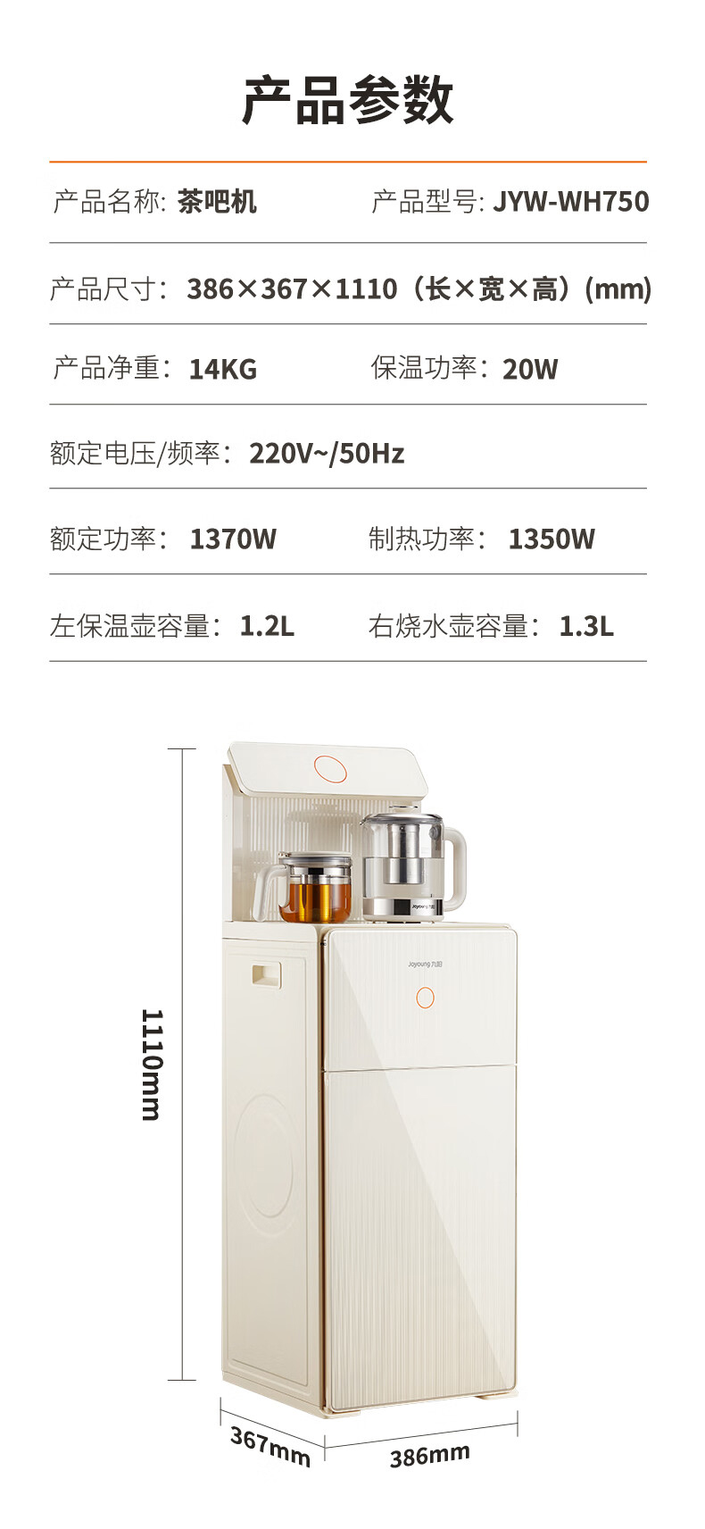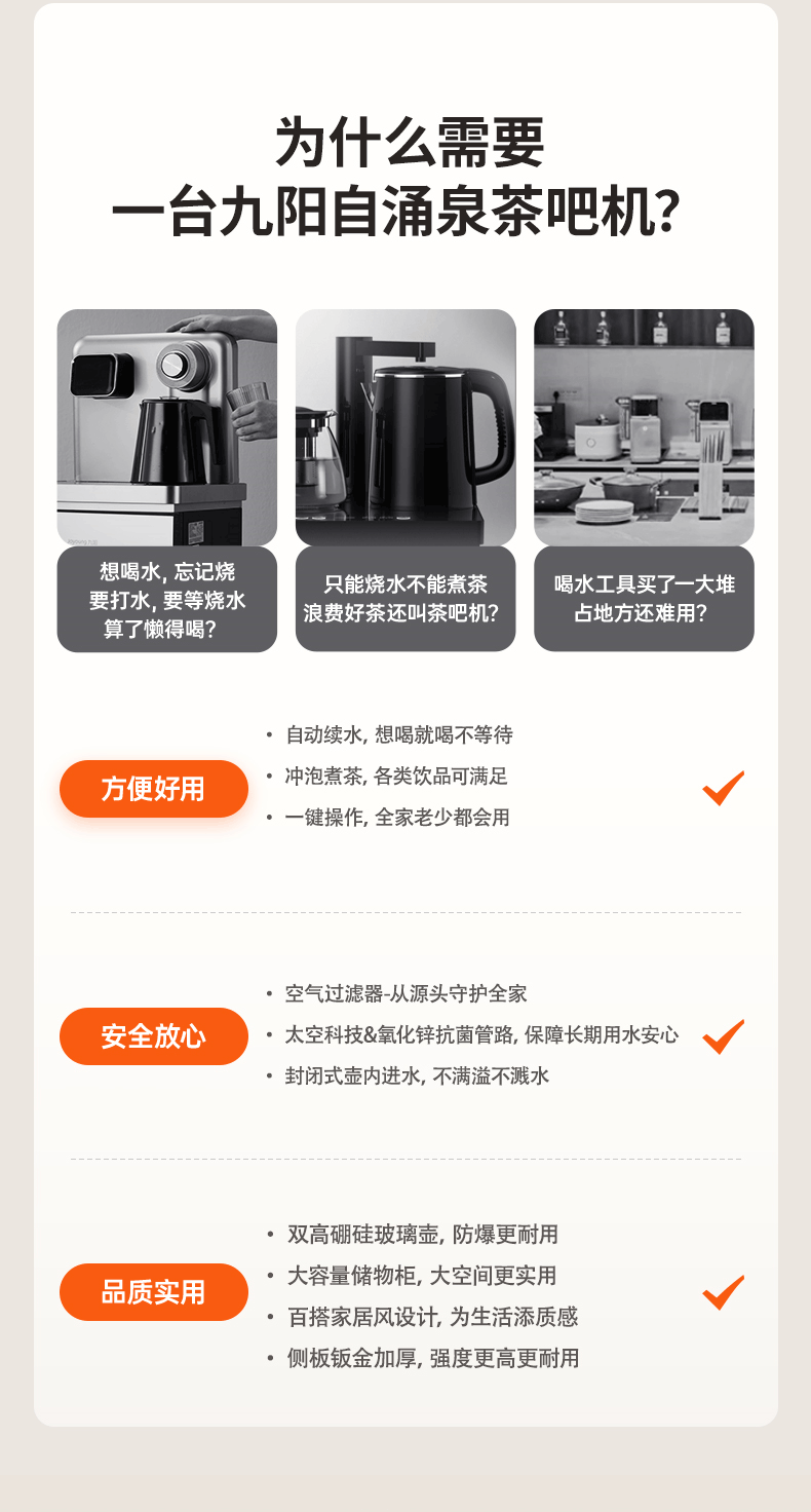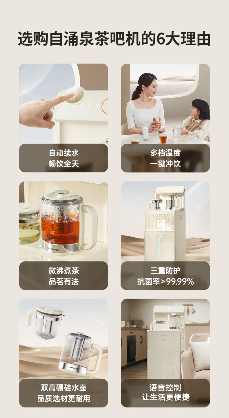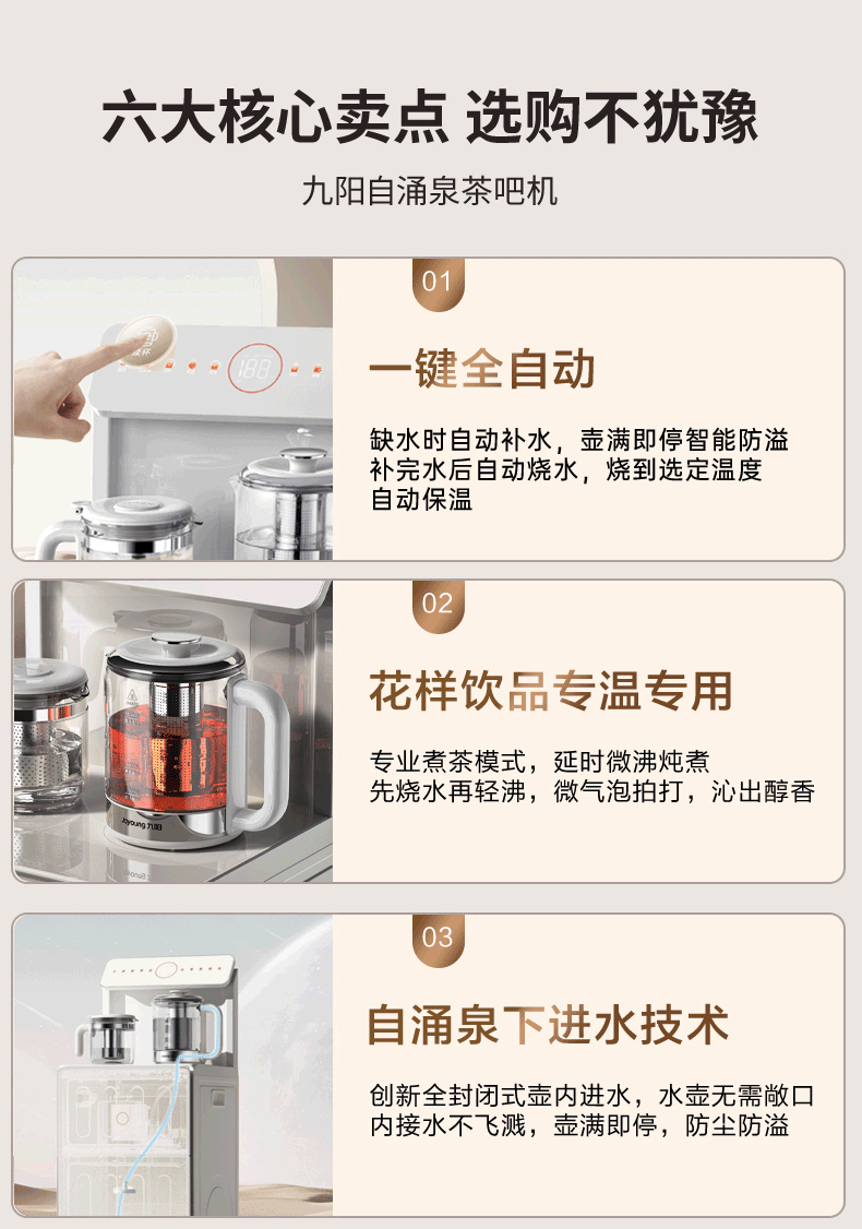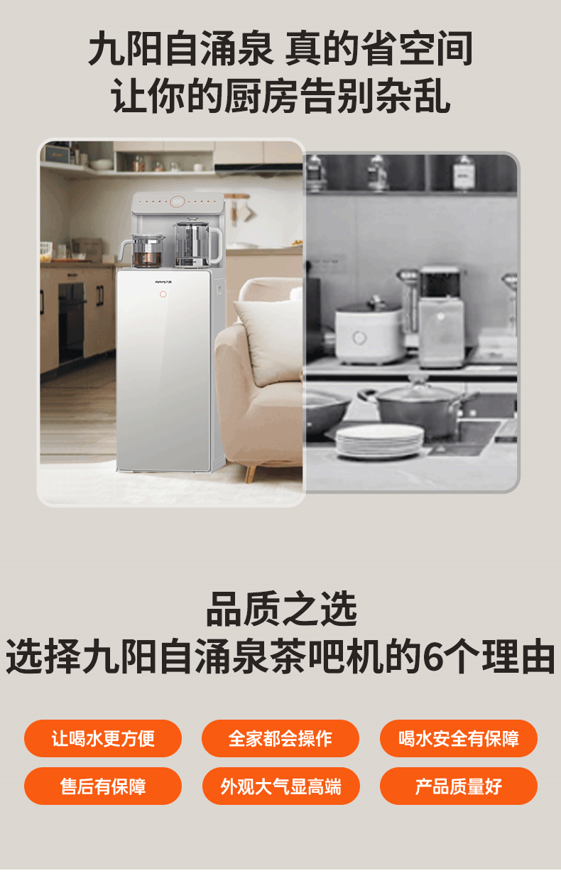 九阳茶吧机自涌泉壶内进水自动续杯家用下置水桶自动多功能饮水机