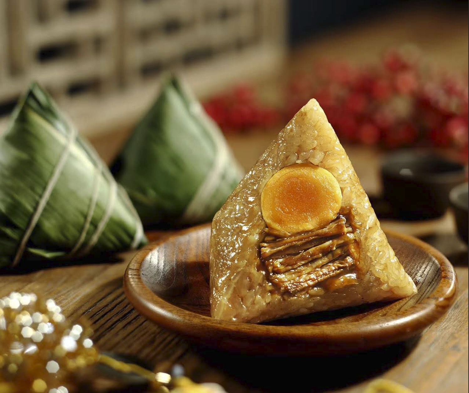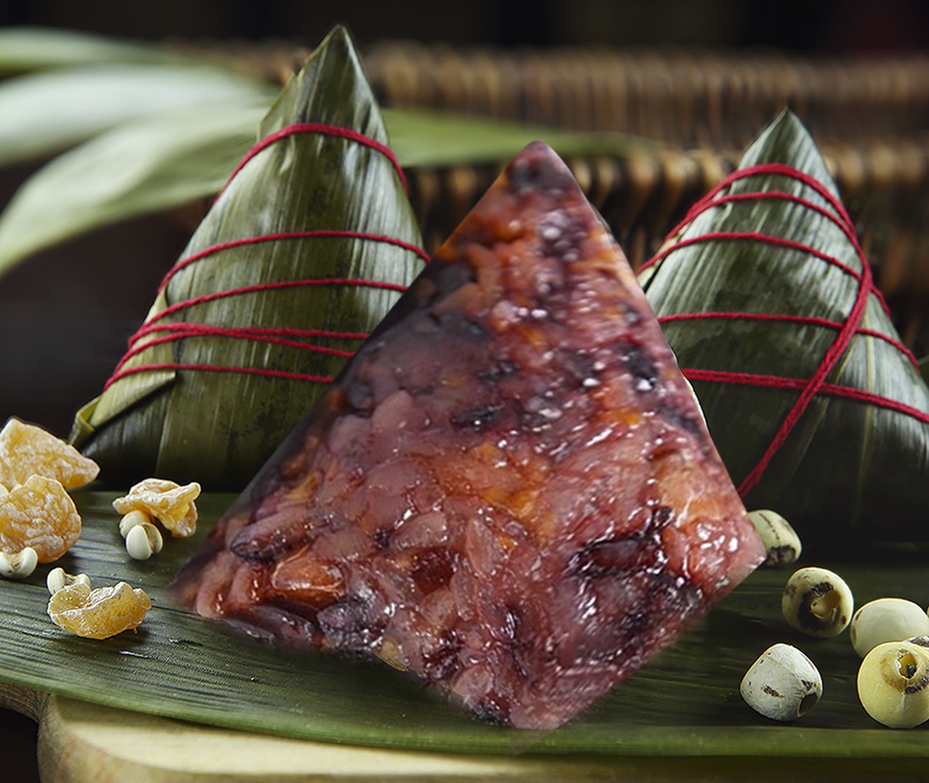 ①艾草豆沙粽子50g/蛋黄鲜肉粽子50g/八宝粽子50g