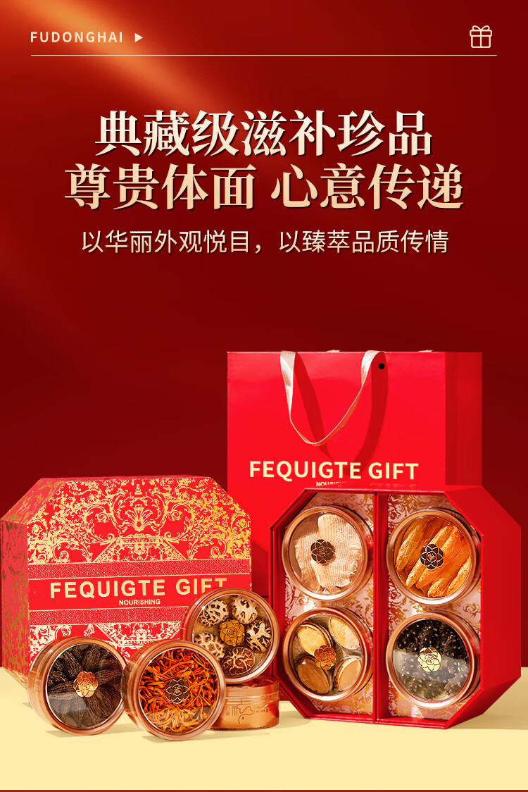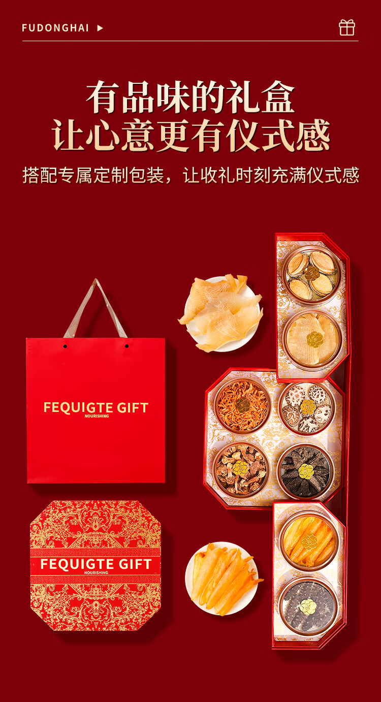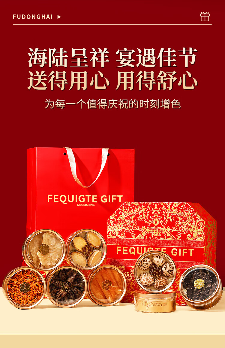 福东海山珍海味八拼礼盒263g 鱼胶海参鲍鱼鱼翅羊肚菌营养滋礼送长辈