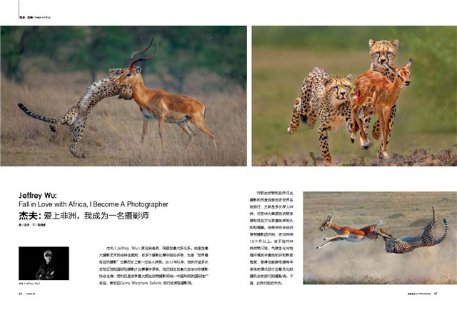 杰夫(Jeffrey Wu)原名吴海辰,现居加拿大多伦多。他是加拿大摄影艺术协会持证裁判,在多个摄影比赛中担任评委,也是"世界最佳自然摄影"比赛历史上第一位华人评委。他是世界最大野生动物摄影网站—中国鸟网的国际推广总监、肯尼亚Game Watchers Safaris 旅行社常驻摄影师。