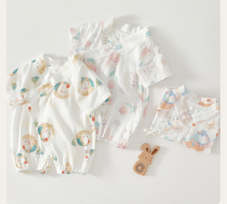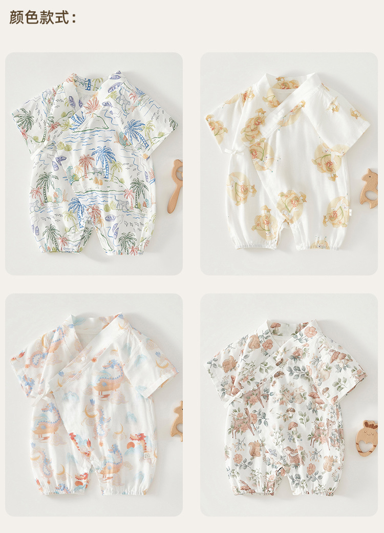 【宝宝裸穿小肌密】婴儿连体衣纱布竹纤维夏季短袖和尚服新生儿包屁衣宝宝哈衣外出服