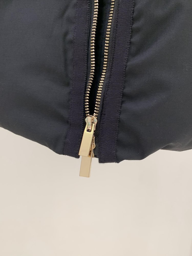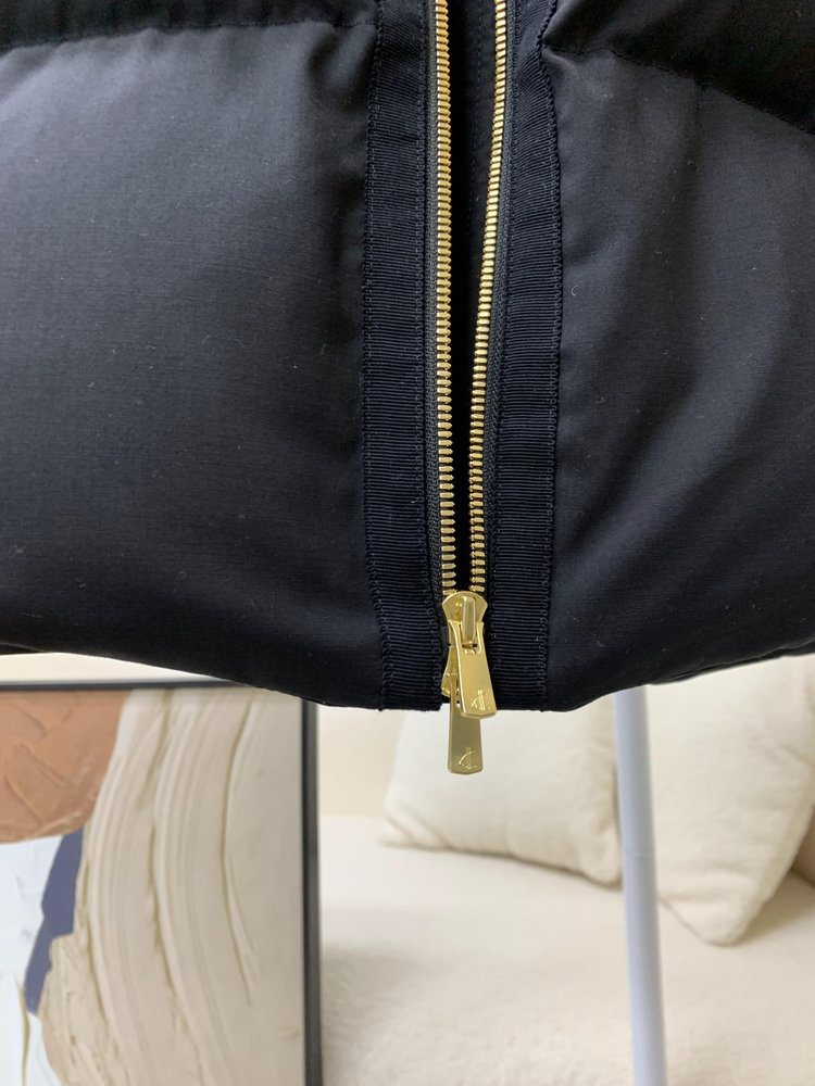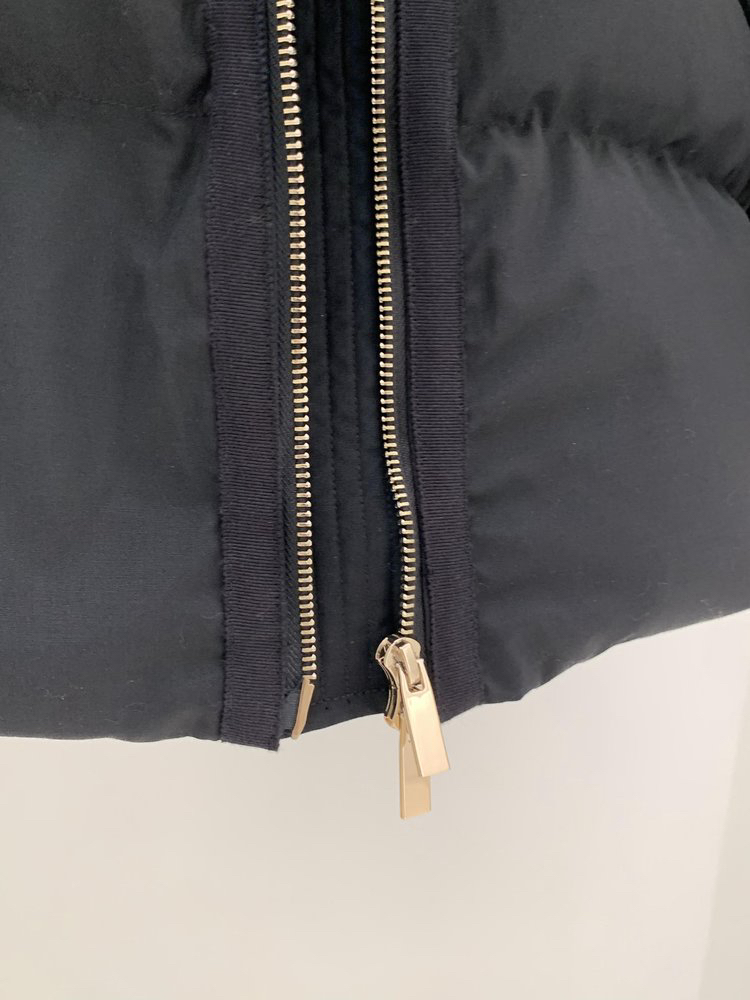 先绗线,后充绒,全部采用分格充绒,使用机器精准直充绒,避免在缝制过程中,绒朵卡在车线缝隙中钻出,面布+两层胆布+里布,用四层结构,将内里鹅绒层层锁住,在穿着过程中不会刺穿面料钻出。