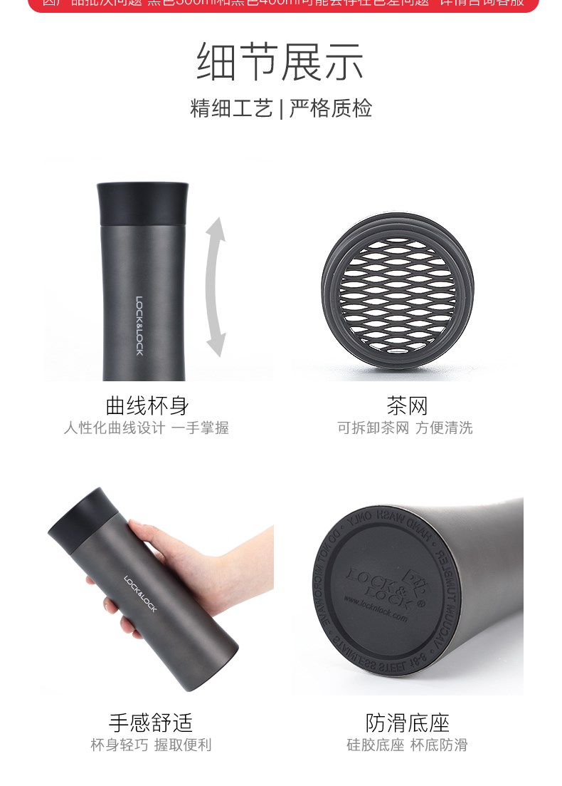 乐扣乐扣 掌心马克保温杯商务时尚车载水杯男女士