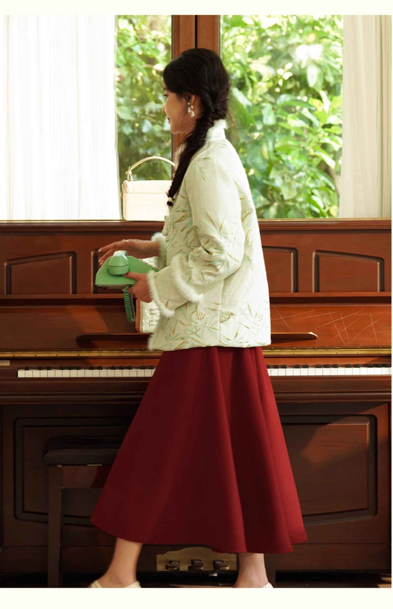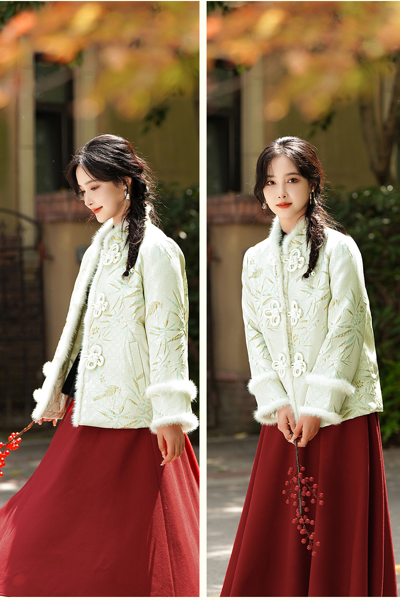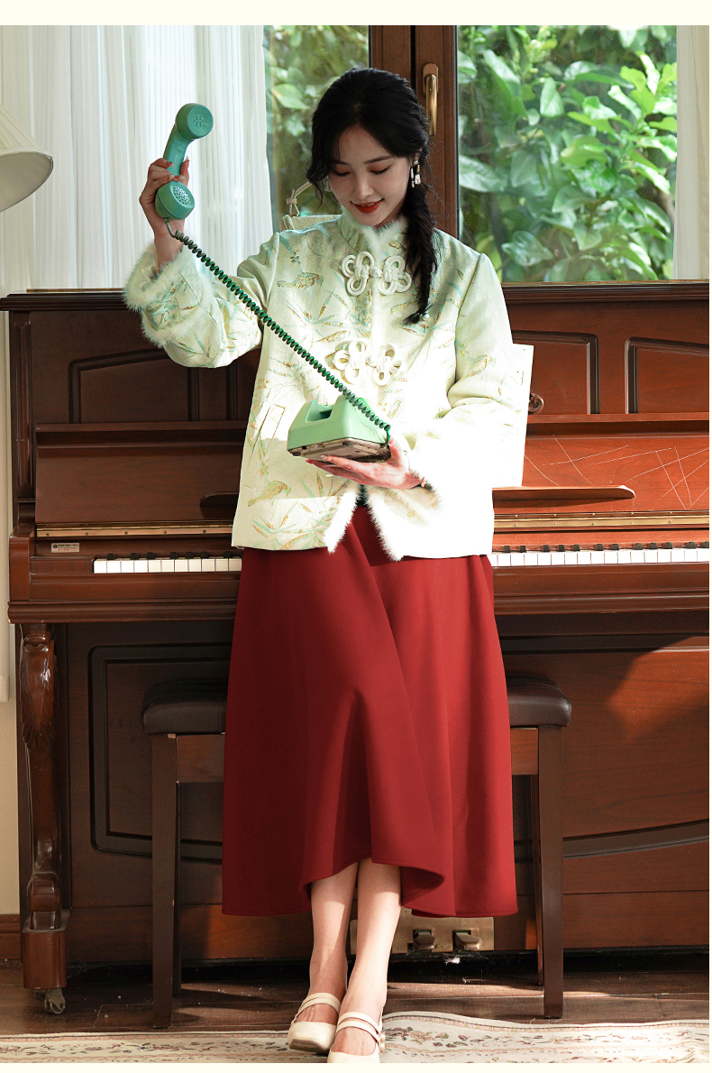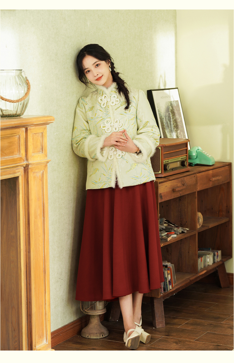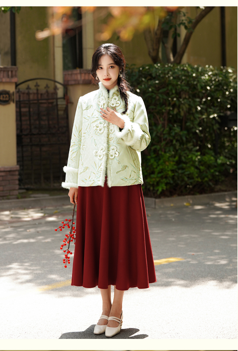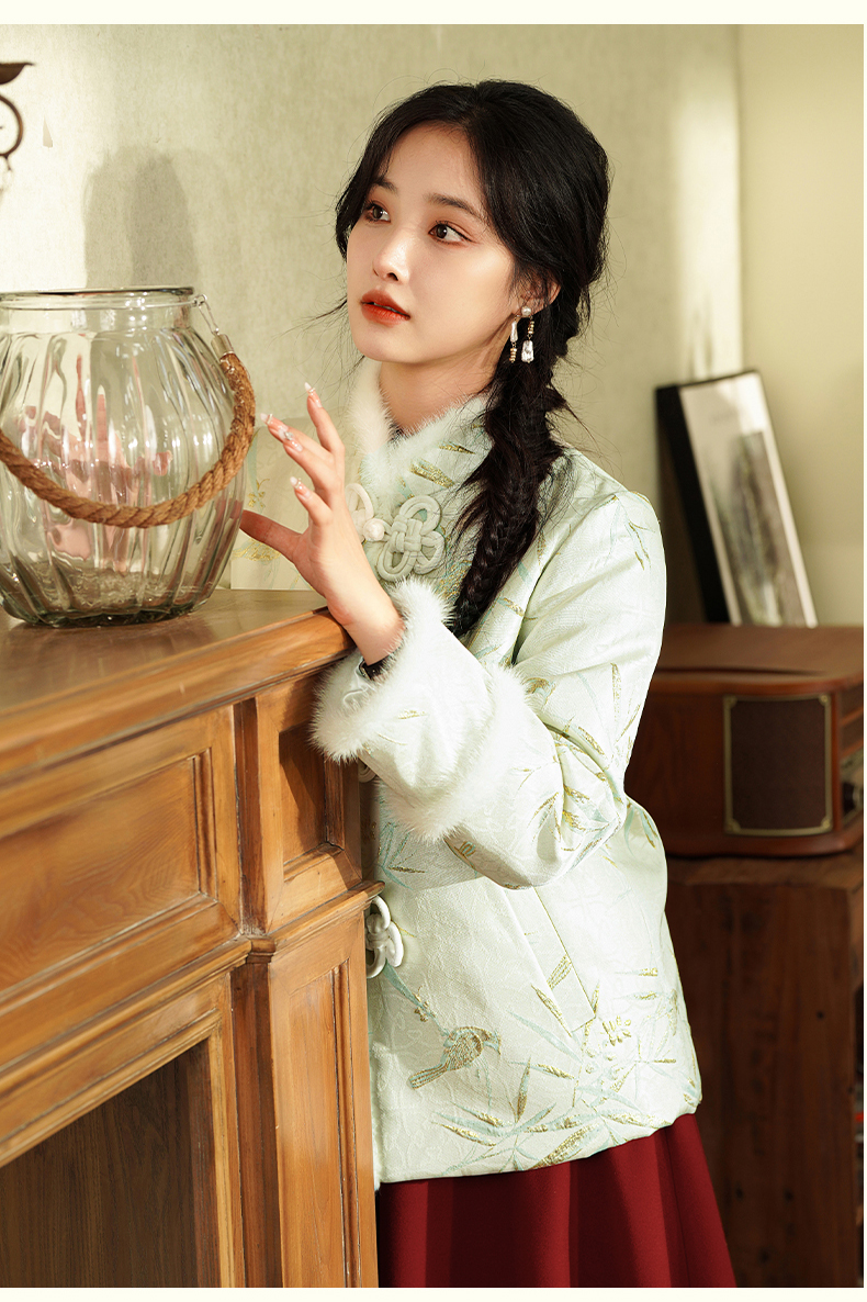 上海逸红颜花竹影2025冬季新款新中式棉服手工花瓣盘扣金丝提花料