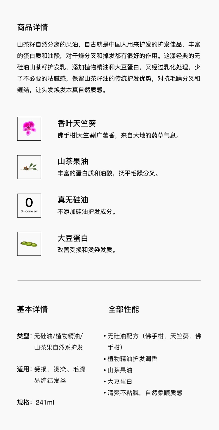 香叶天竺葵山茶护发乳(无硅油配方)241ml