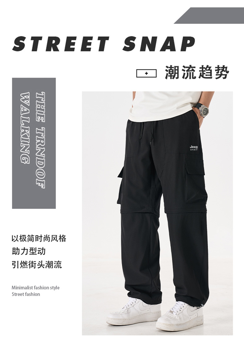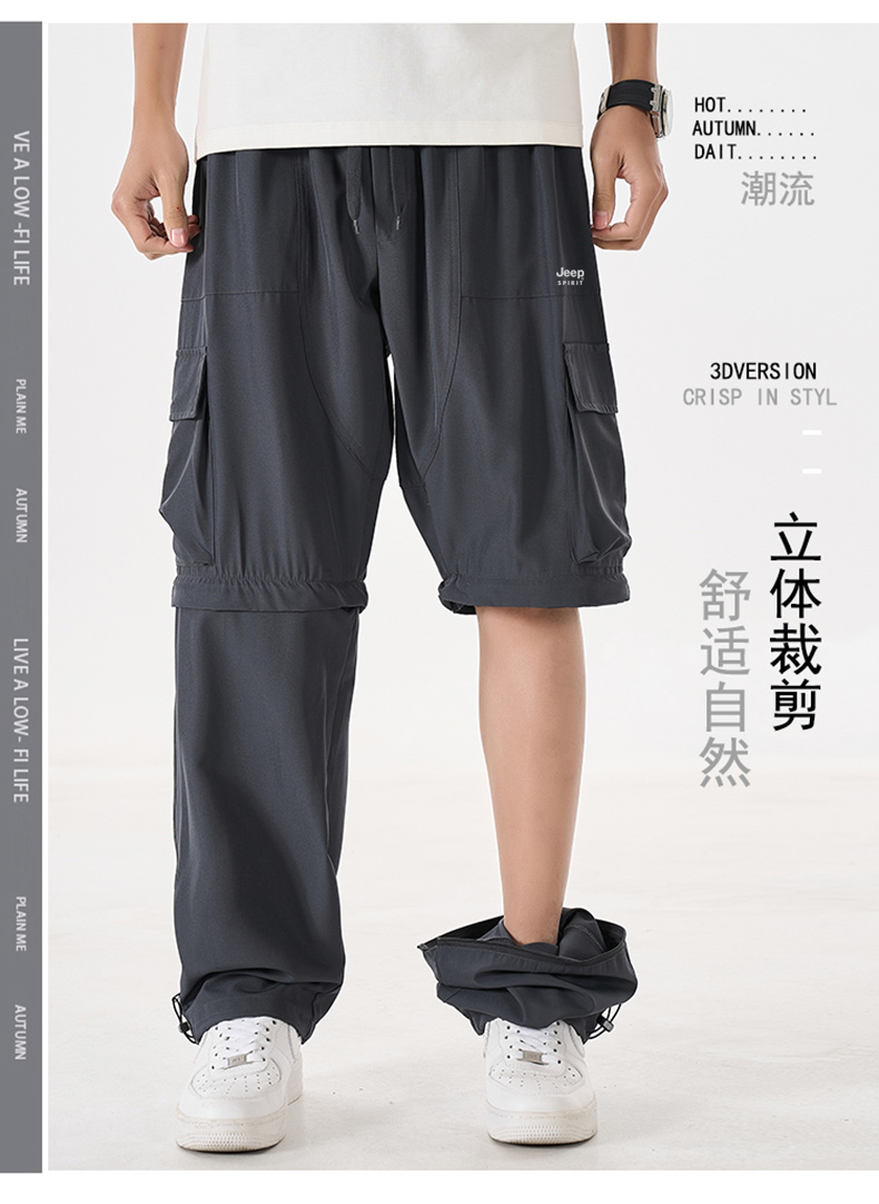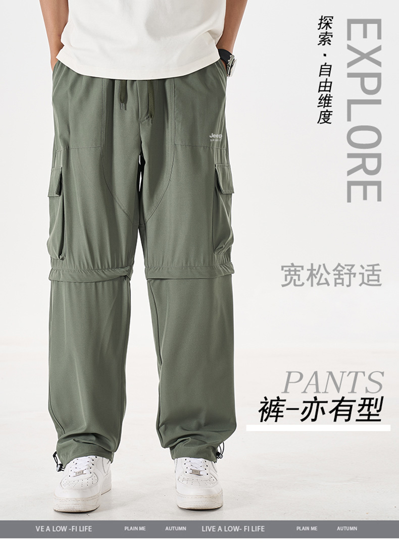 【专属】JEEP SPIRIT 【一裤两穿工装裤】可当短裤 可当长裤 可直筒 可束腿 夏季潮流宽松直筒阔腿休闲裤