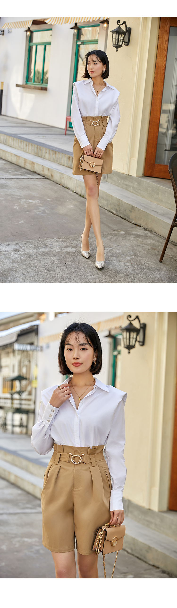 白色垫肩衬衫设计感小众时尚女职业通勤OL