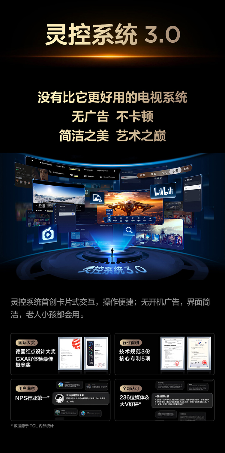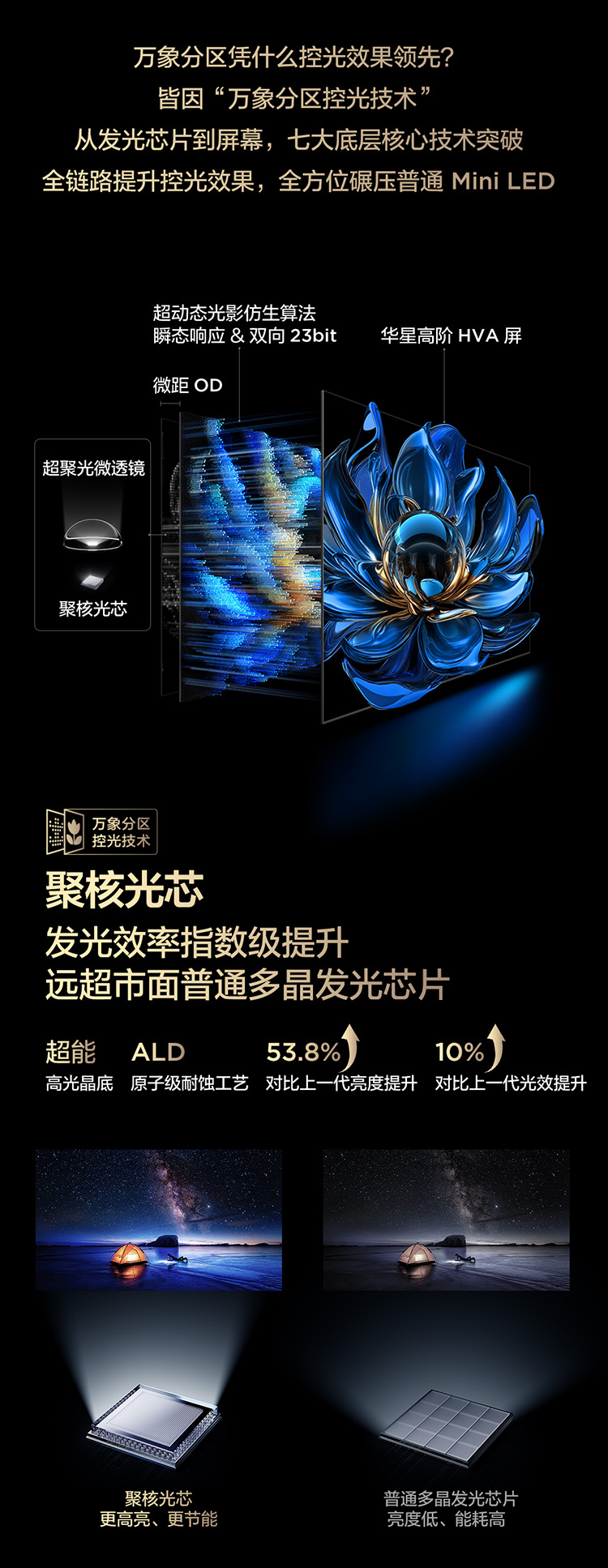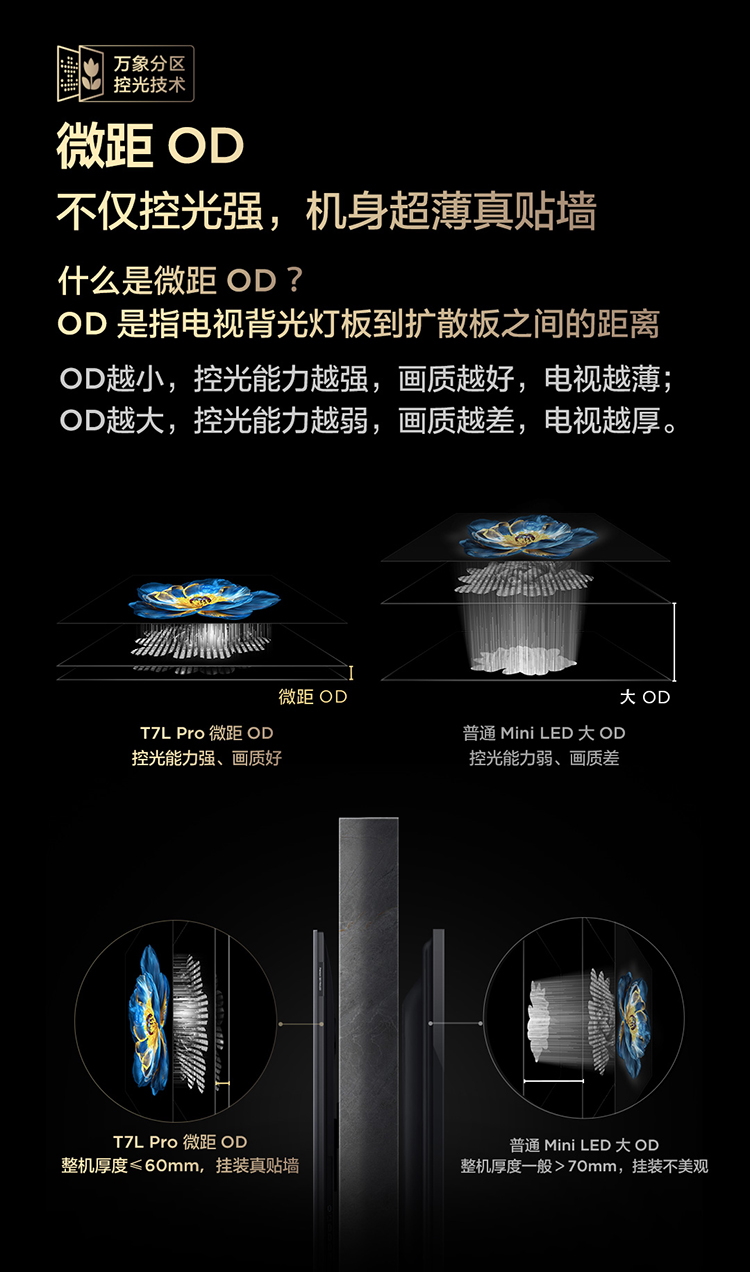 TCL电视 75T7L Pro 75英寸 QD-Mini LED 蝶翼星曜屏 万象分区 绚彩XDR 2200nits 超薄电视