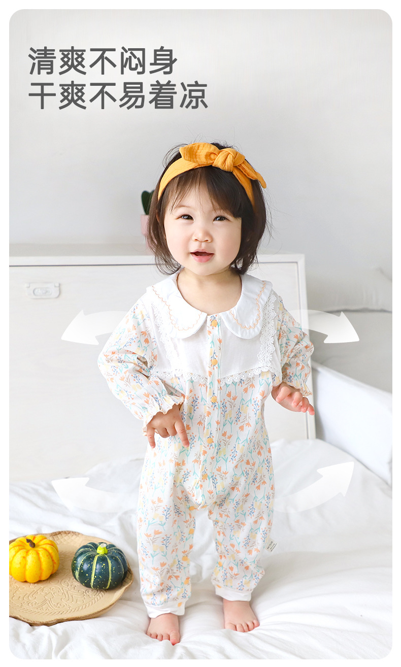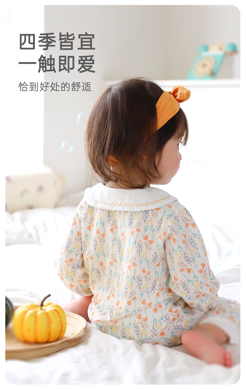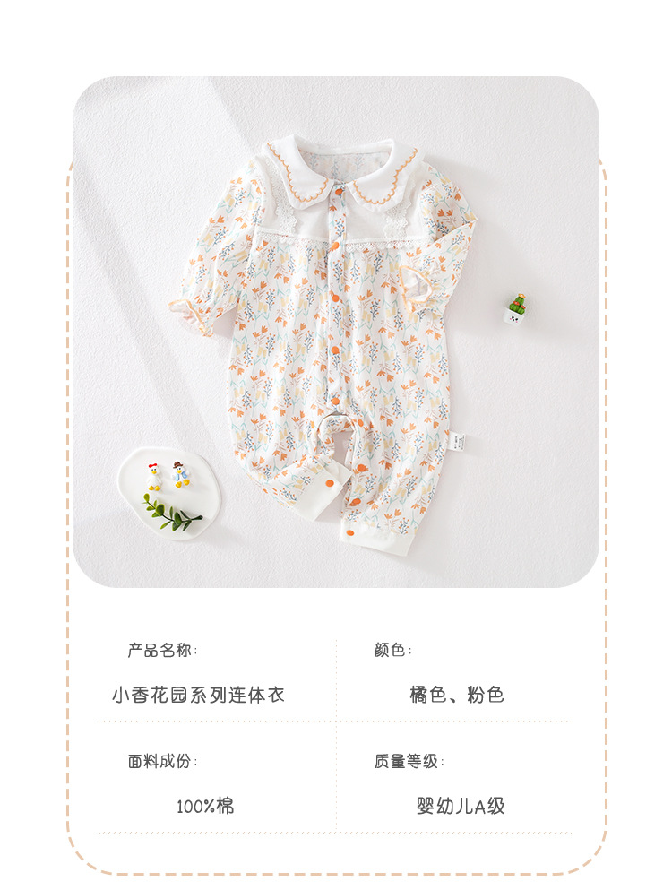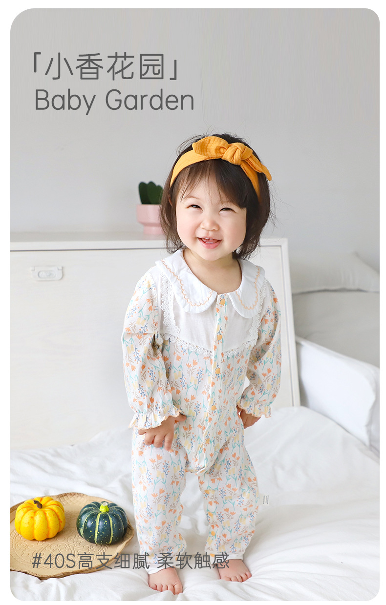 【小香花园系列连体哈衣】婴儿夏季衣服a类连体衣薄款夏装纯棉服装女宝宝长袖婴童装公主风