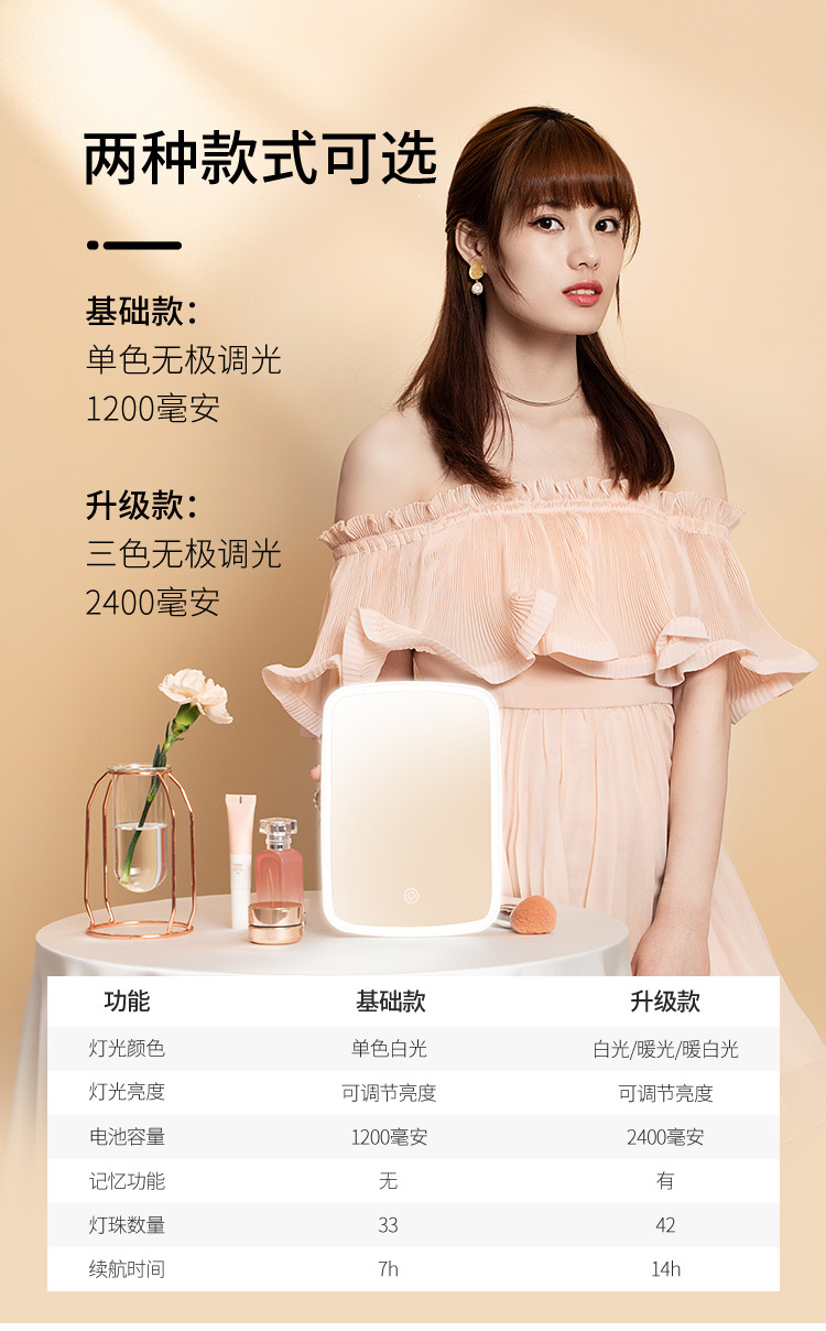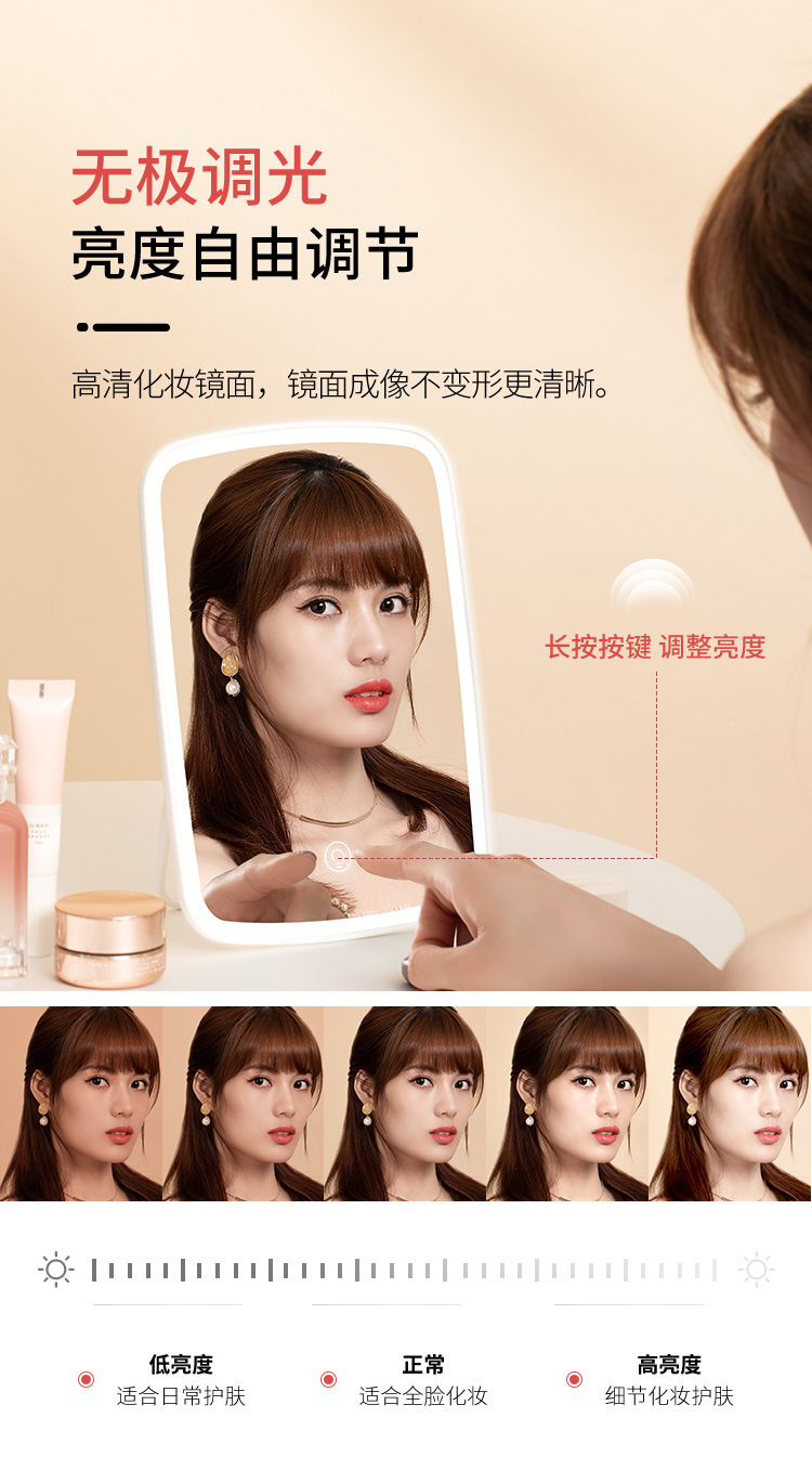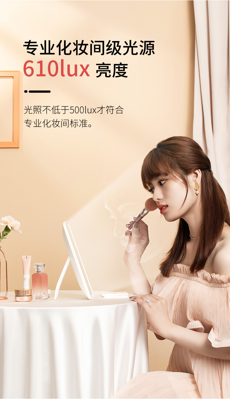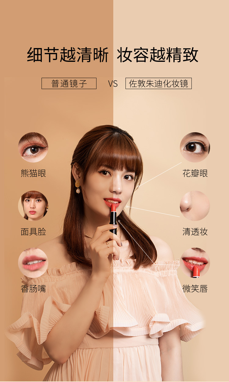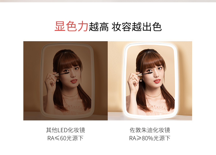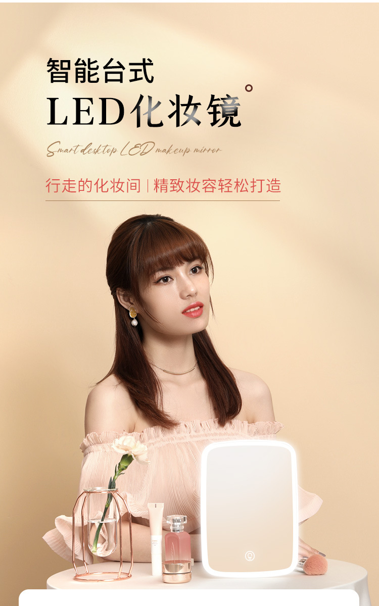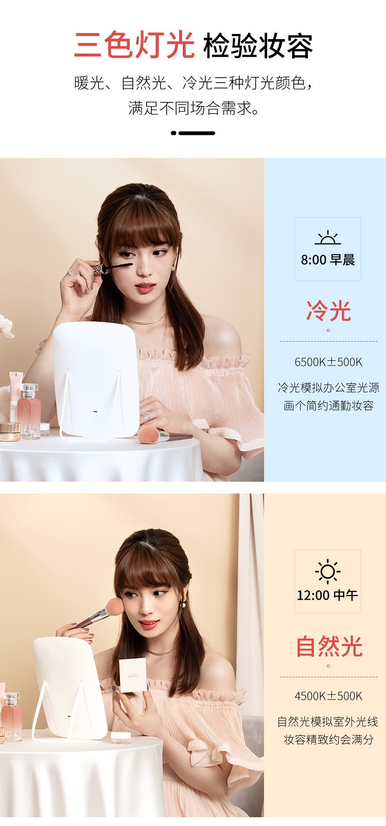 【行走的化妆间 均匀照亮你的美】台式LED3色灯光化妆镜便携折叠补光桌面梳妆美容镜化妆镜子LED灯 佐敦朱迪