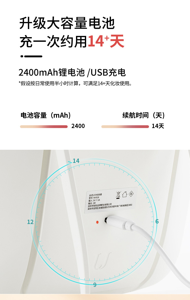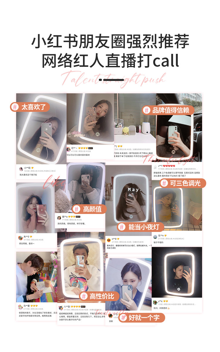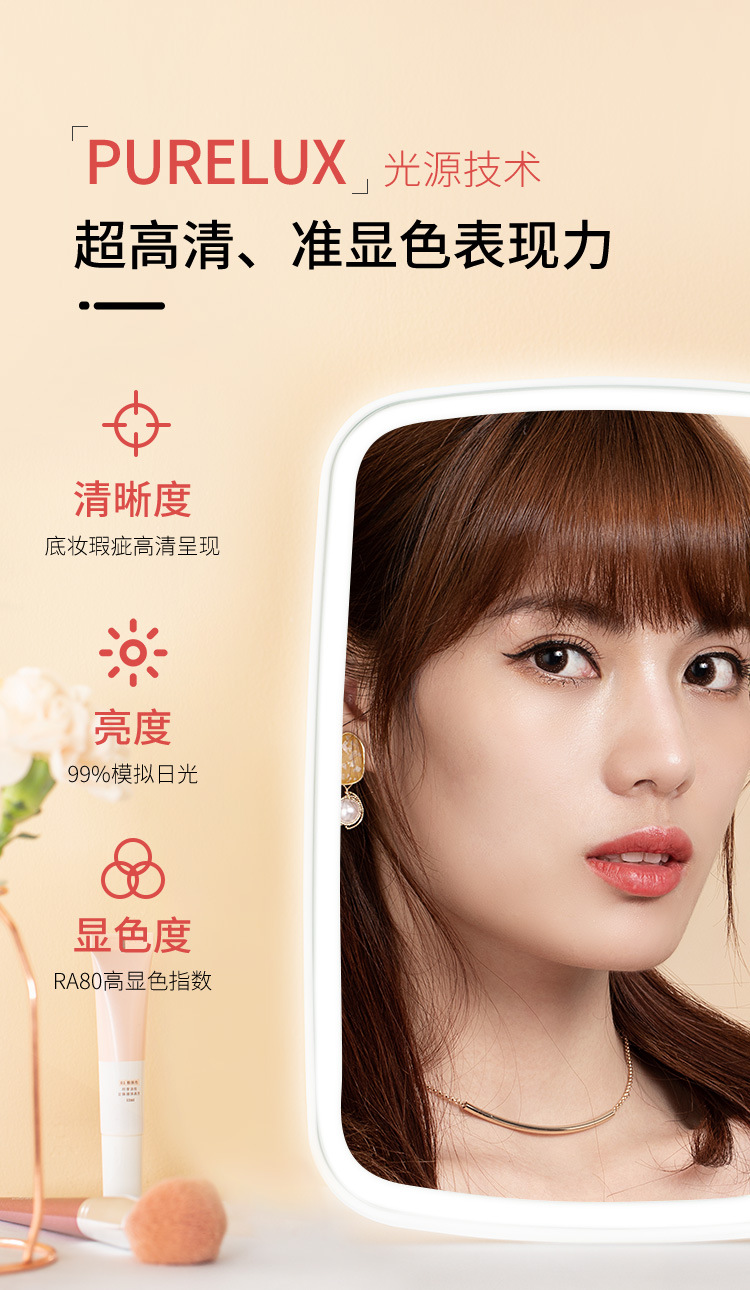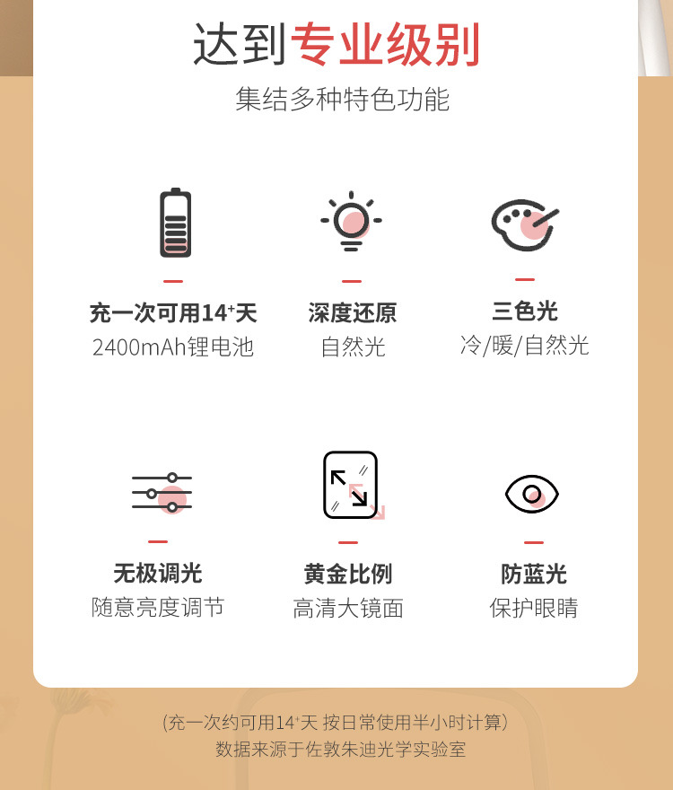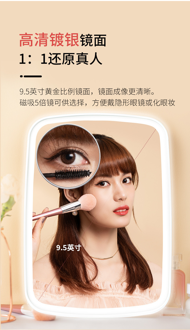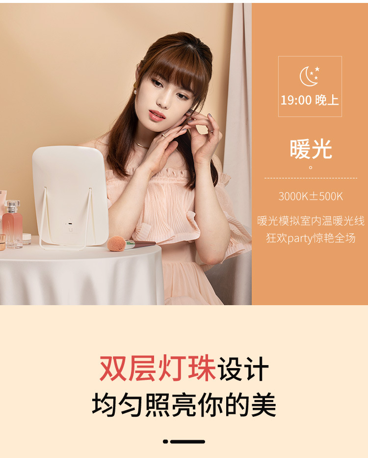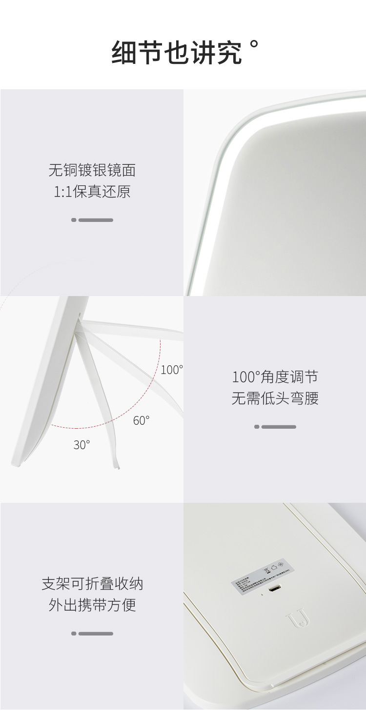 【行走的化妆间 均匀照亮你的美】台式LED3色灯光化妆镜便携折叠补光桌面梳妆美容镜化妆镜子LED灯 佐敦朱迪
