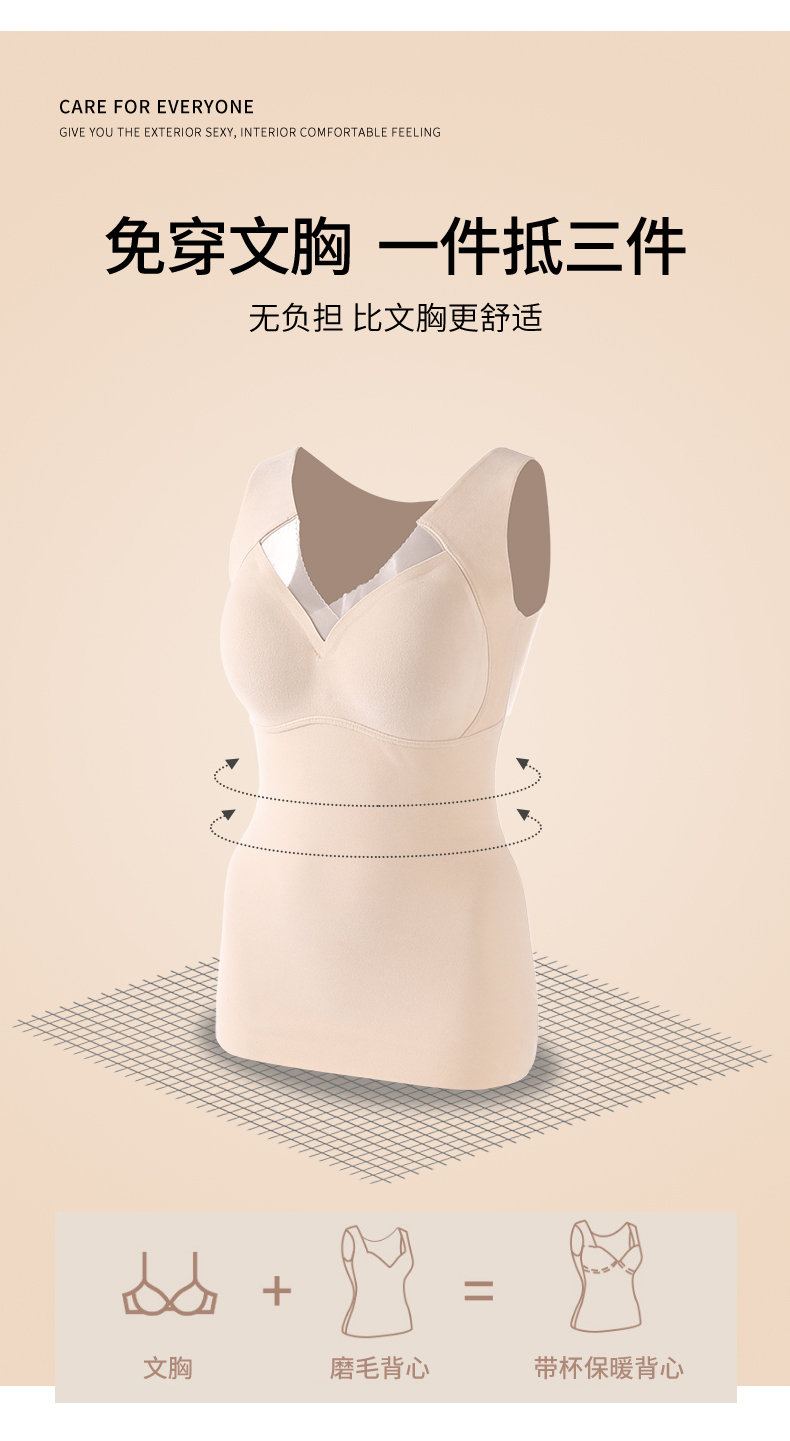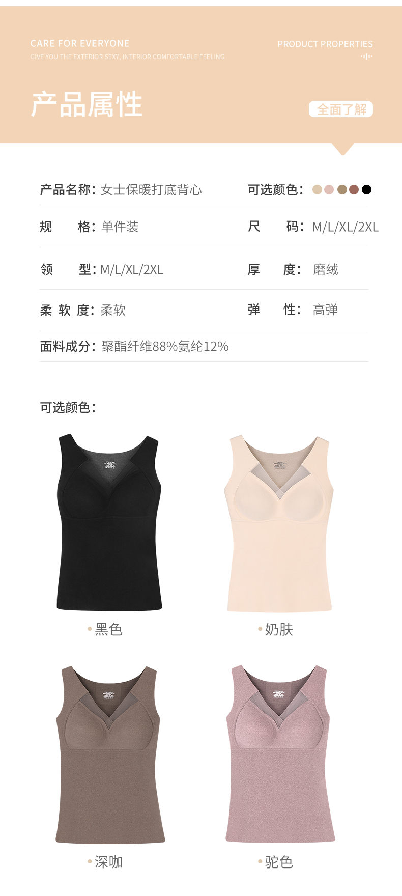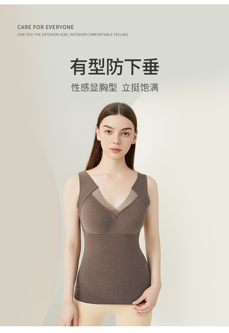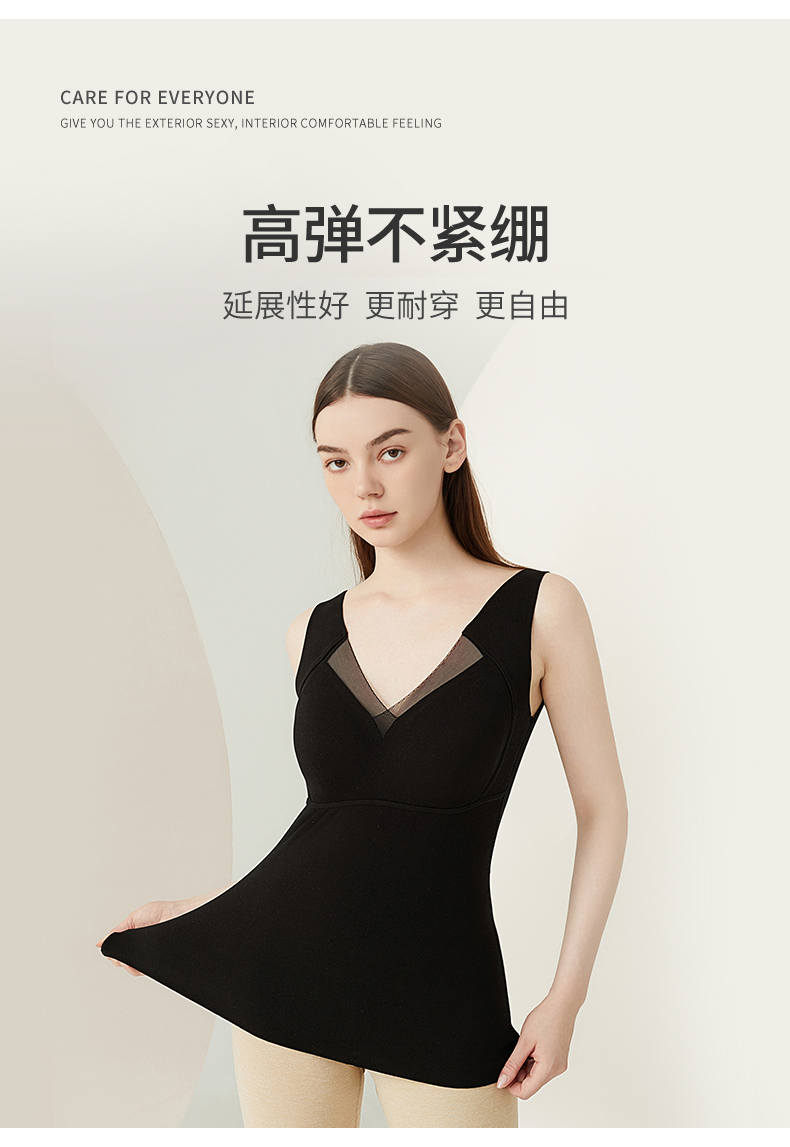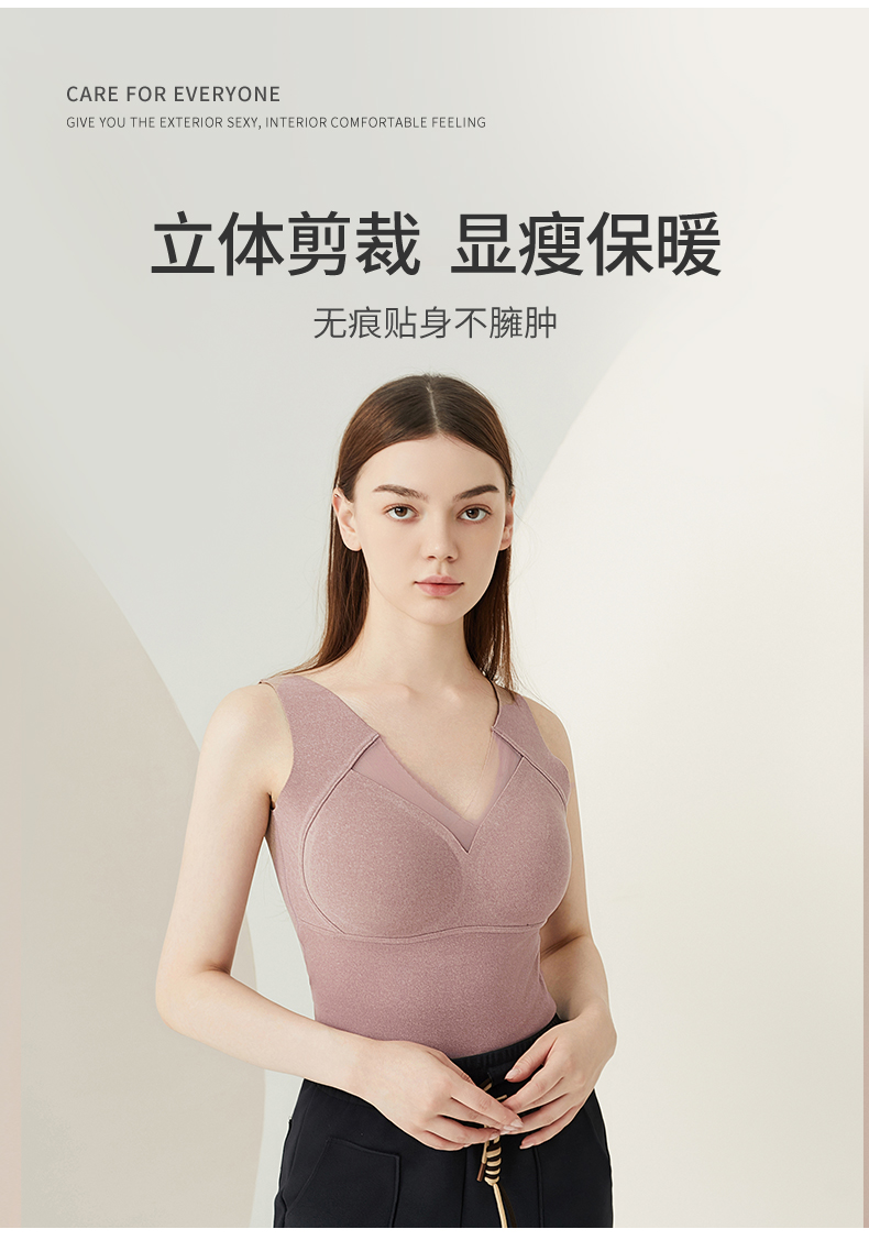 雅黛丽保暖背心带胸垫一体内搭秋冬修身显瘦打底上衣无痕双面磨毛