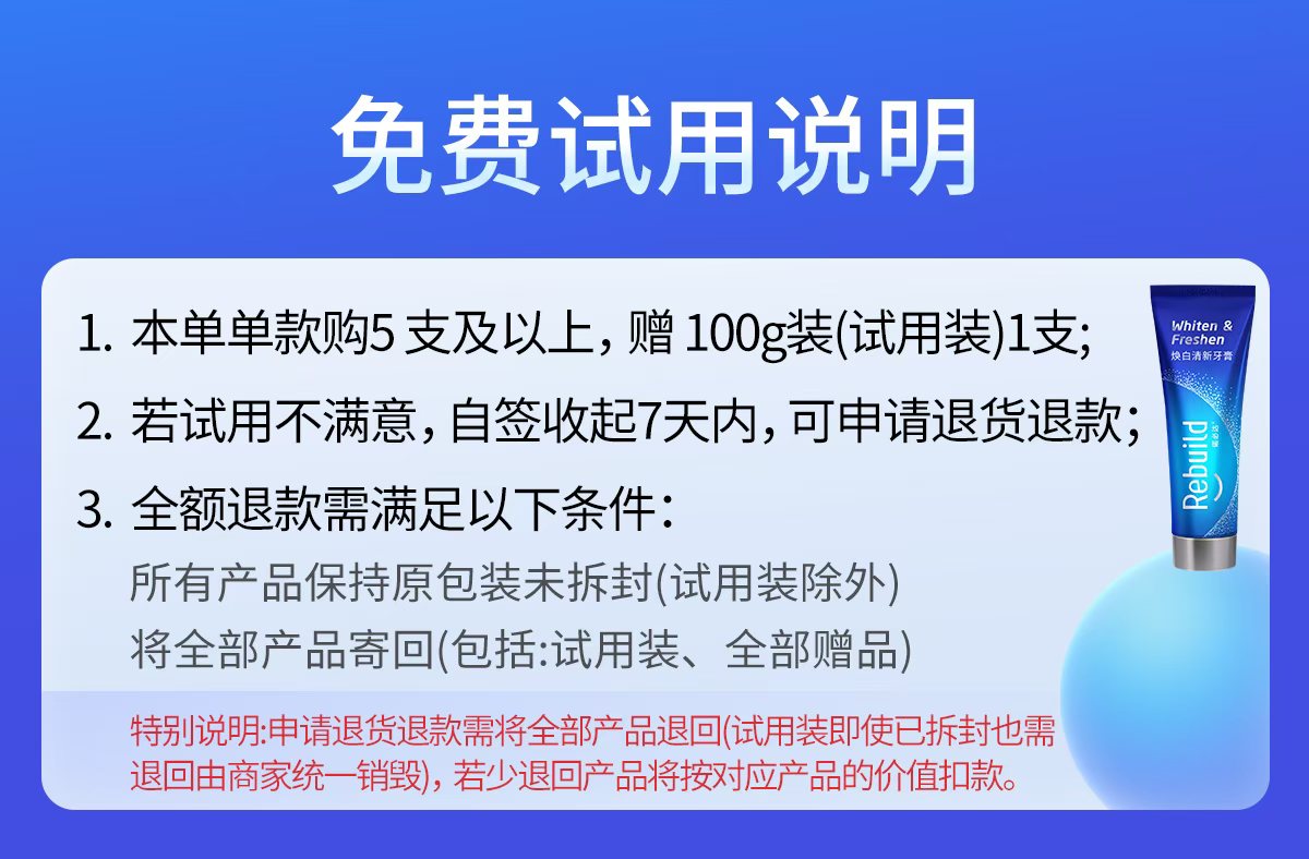 【购5支送同款1支免费试用】诺必达Rebuild焕白清新牙膏 牙黑牙黄牙垢牙结石牙齿敏感牙龈出血肿痛口腔异味者推荐使用