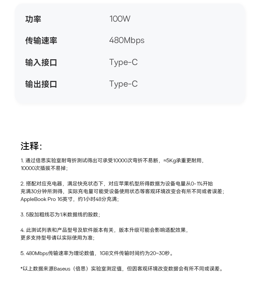 倍思 防冻系列 快充数据线 Type-C to Type-C 100W