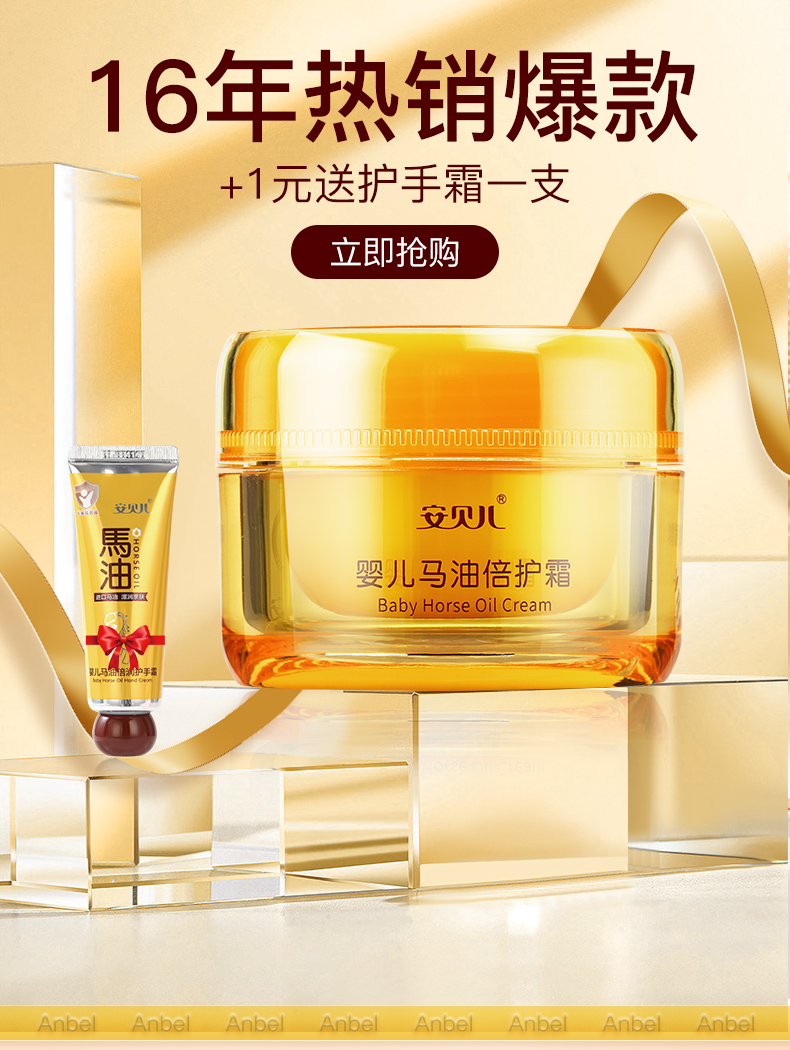安贝儿 婴儿马油倍护霜送婴儿马油倍润护手霜50g+50g