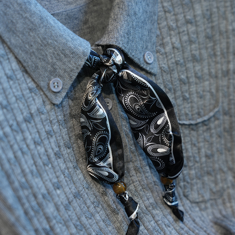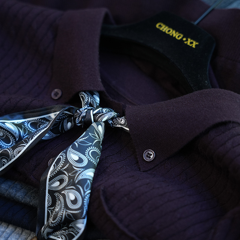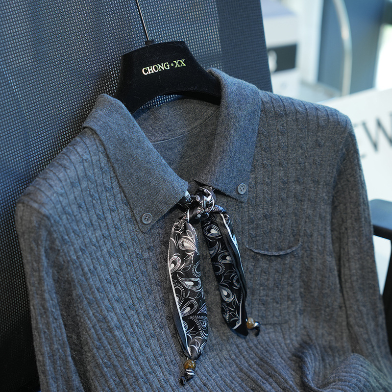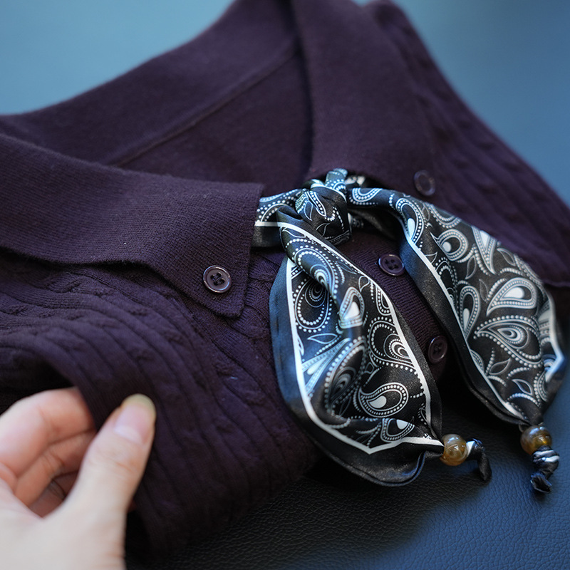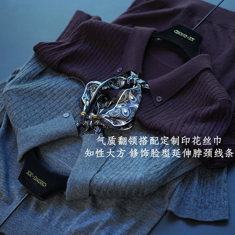 气质翻领,搭配定制的印花丝巾