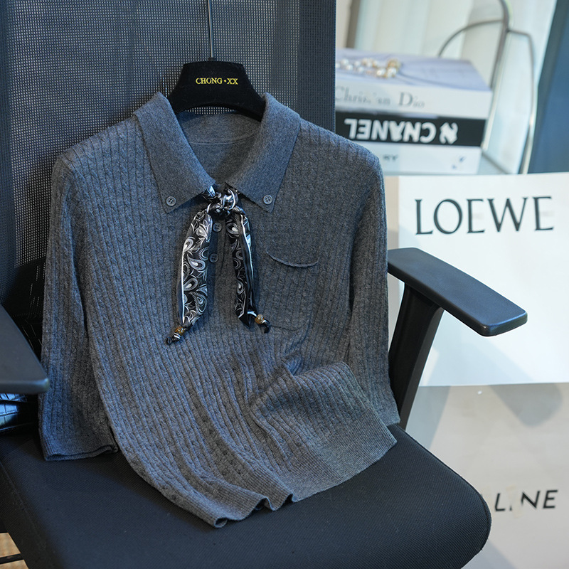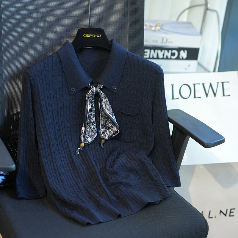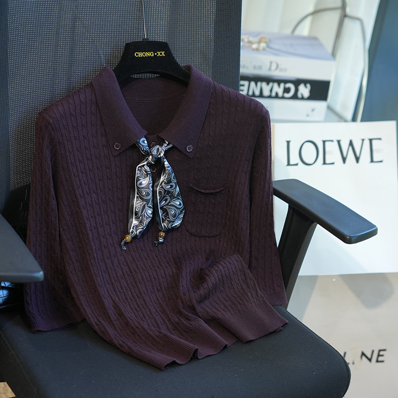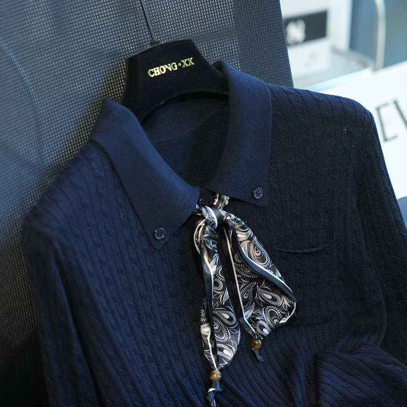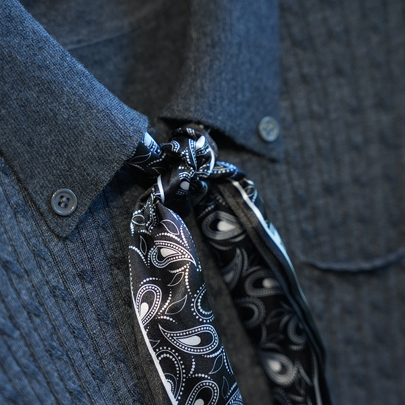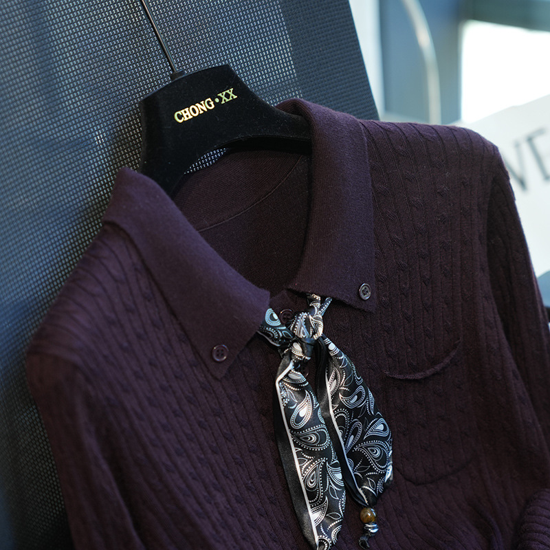 气质翻领,搭配定制的印花丝巾