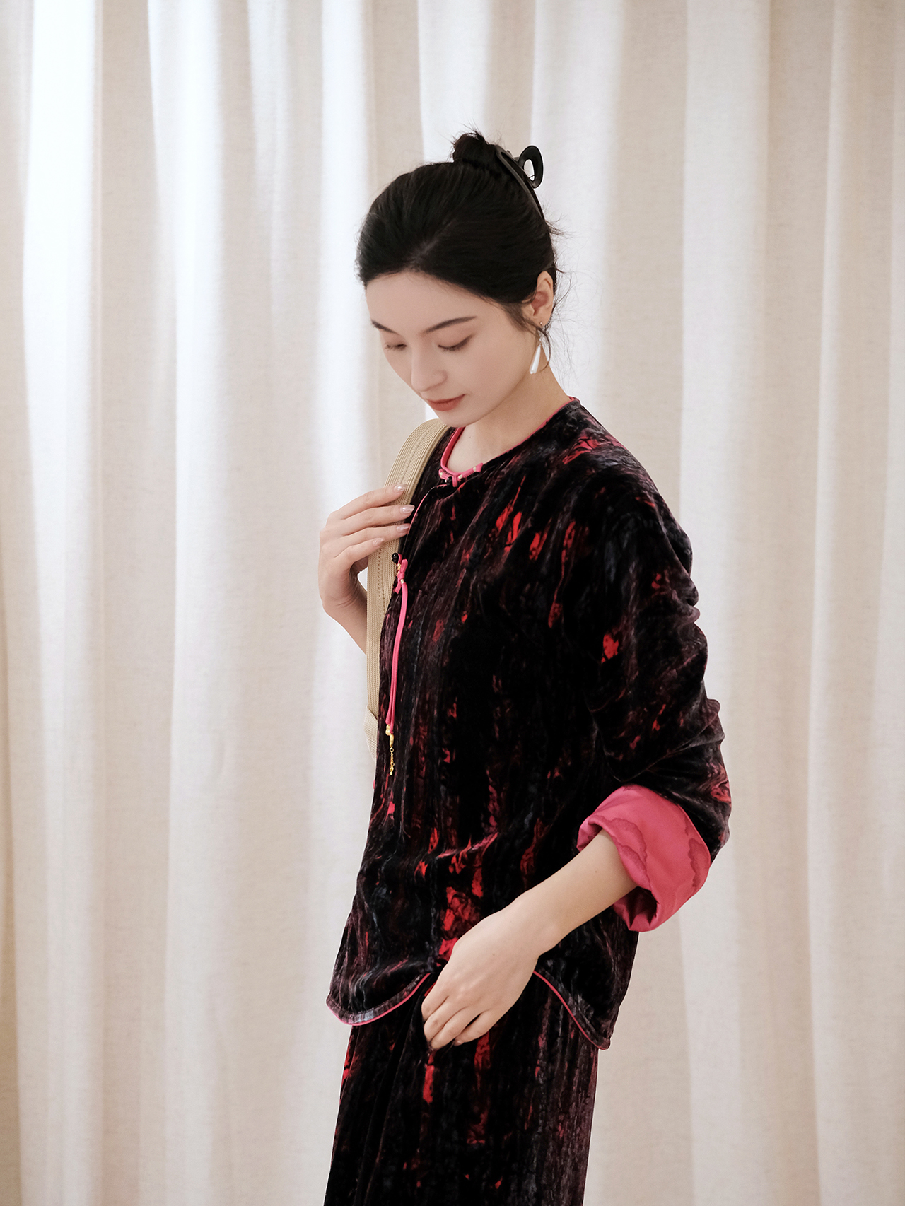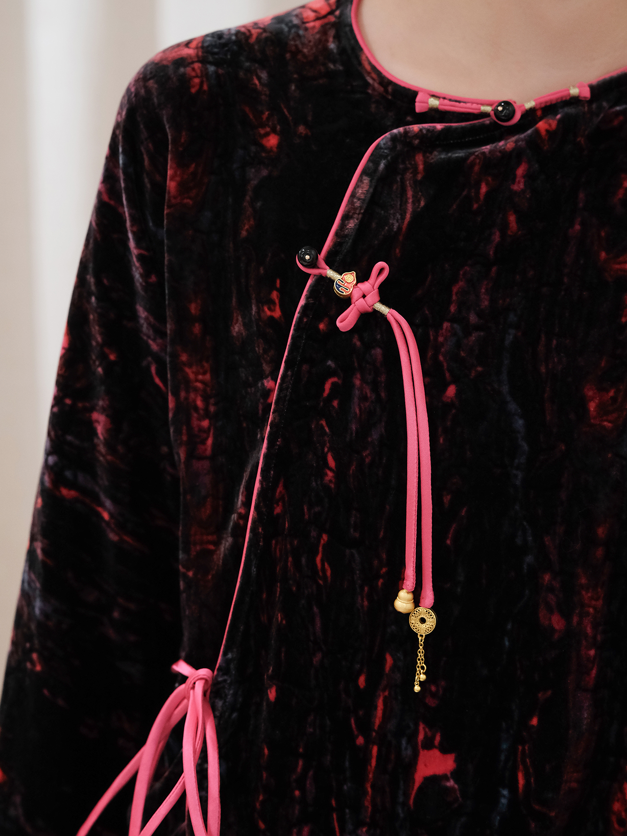 盛唐婧 | 新中式真丝丝绒斜襟上衣