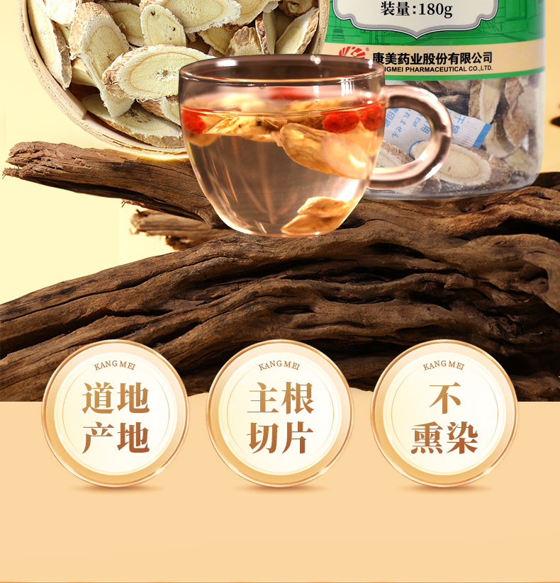康美药业黄芪180g/瓶 药食同源康美罐装中药饮片 可搭配当归大枣枸杞党参等泡水煲汤
