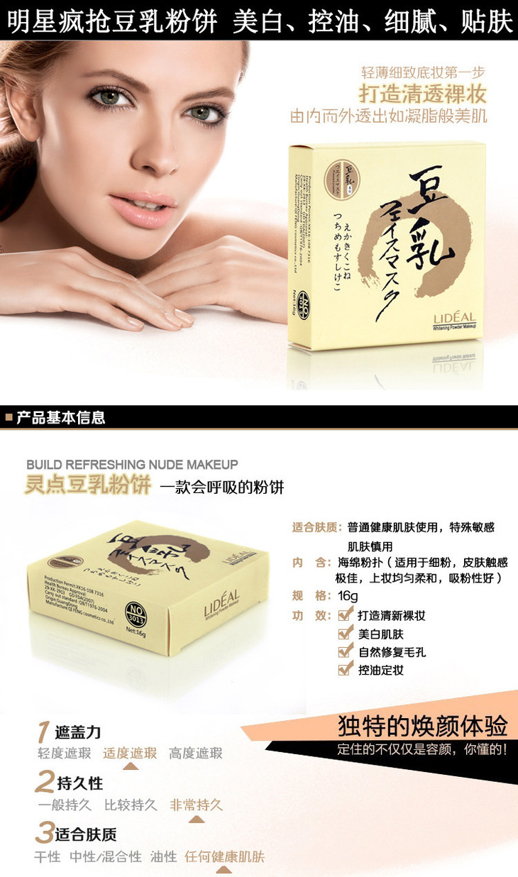 【化妆品】热卖推荐产品 灵点LIDEAL豆乳粉饼 干粉
