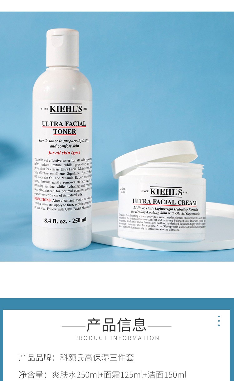 【双12嗨购节】【全球购】「部分规格送科颜氏金盏花水40ml+专柜礼袋」Kiehl's科颜氏高保湿三件套礼盒装补水滋润·现货速达