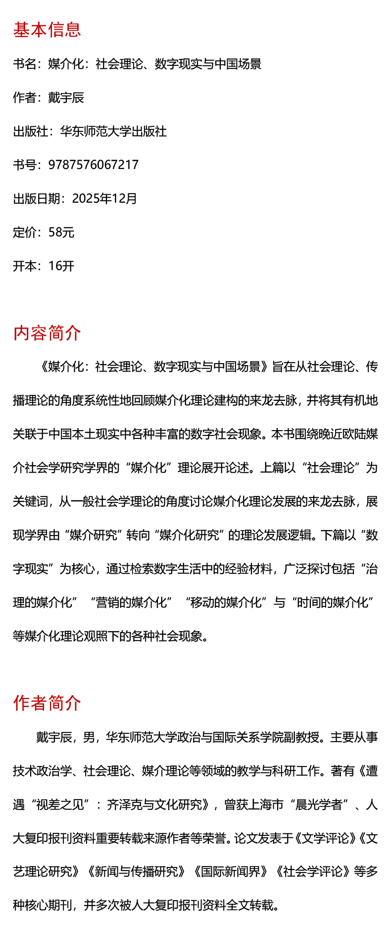 媒介化 社会理论、数字现实与中国场景 戴宇辰