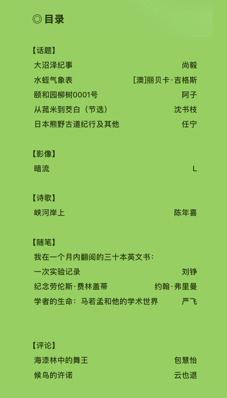 在2022年春天诞生的第30辑《单读》,以“自然”为主题结集,召唤大家去公园和野外,暂别逼仄的生活,感受闲暇与惬意:去国家公园观鸟、去原始山林观察水蛭、去颐和园寻找0001号柳树、去江南乡野认识菰米和茭白、去日本熊野古道徒步……这趟亲近自然之旅,将唤醒我们几近沉睡的好奇心和求知欲,进入“原来是这样”的惊奇时刻;回到自然的维度中理解人,找寻人和自然相处的新办法。