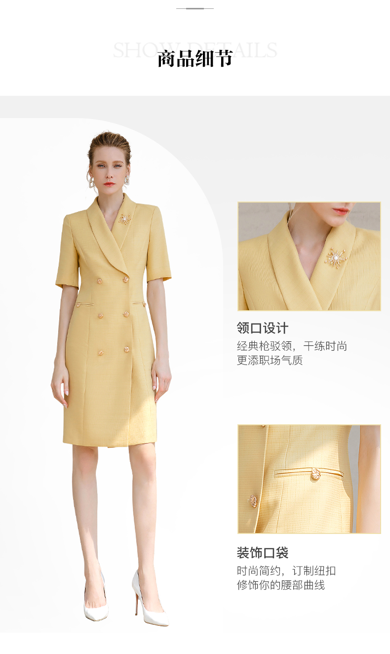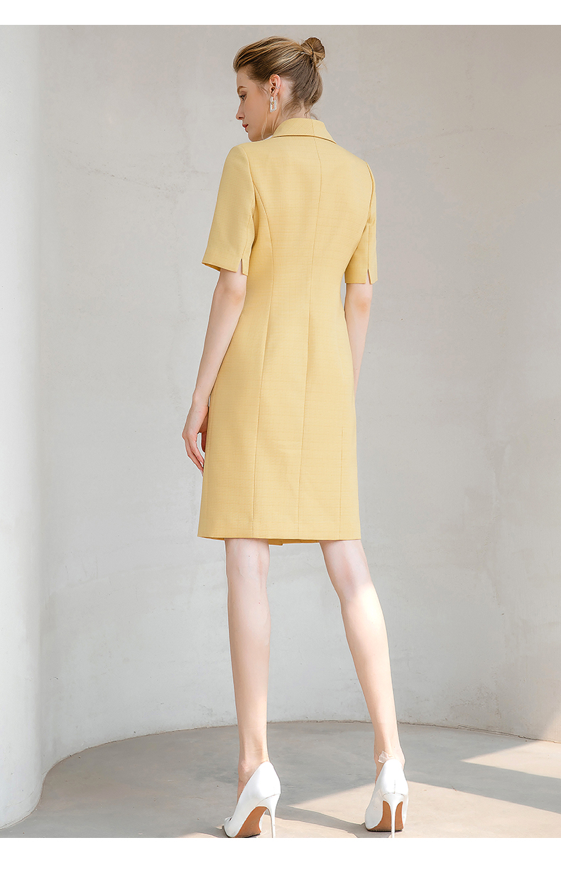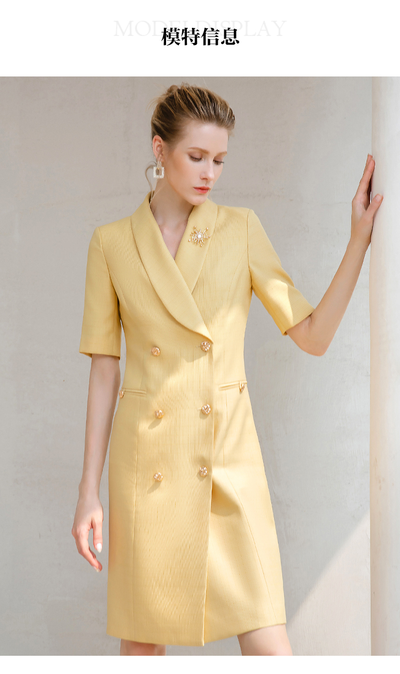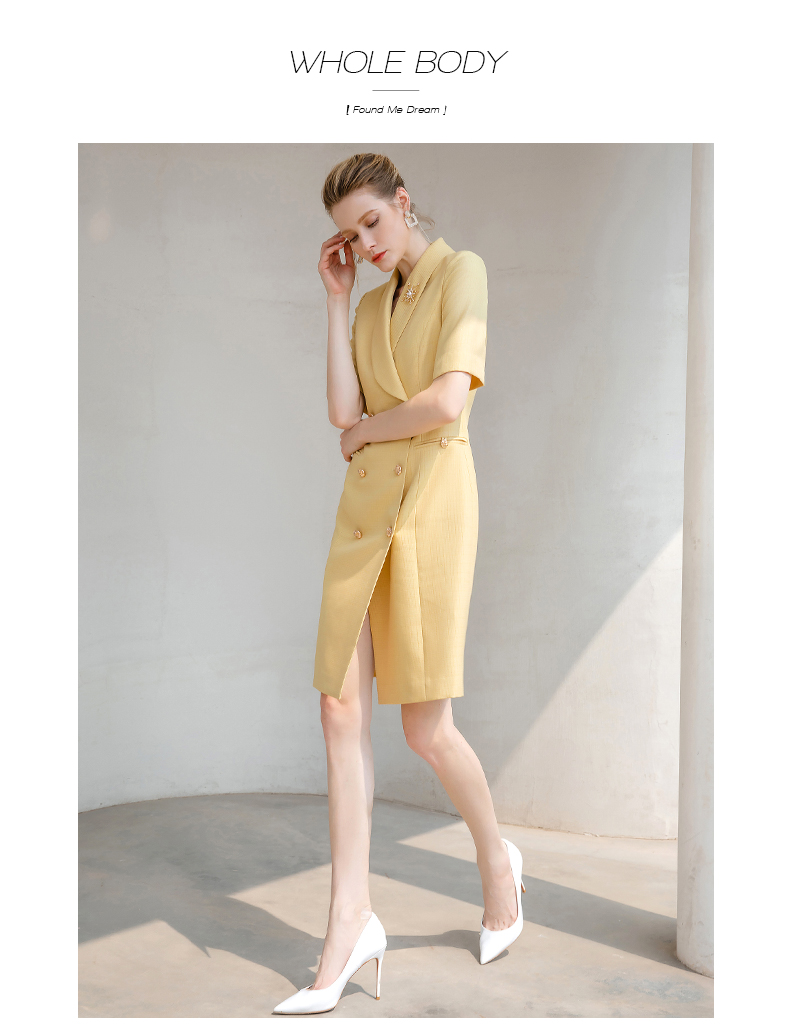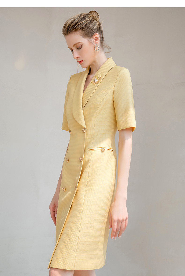 夏季新款高端黄色连衣裙女短袖职业装洋气西装裙主持人工作服套裙