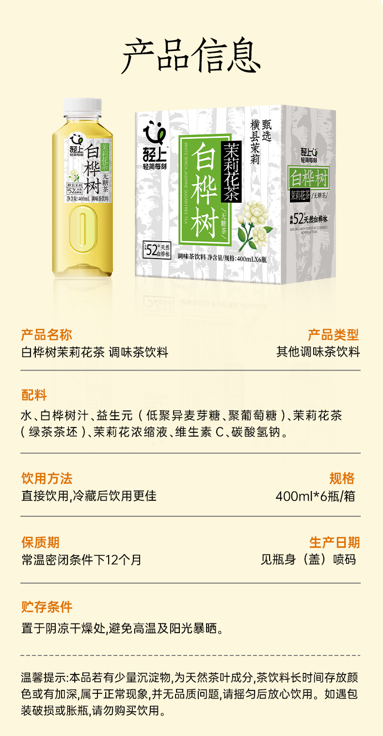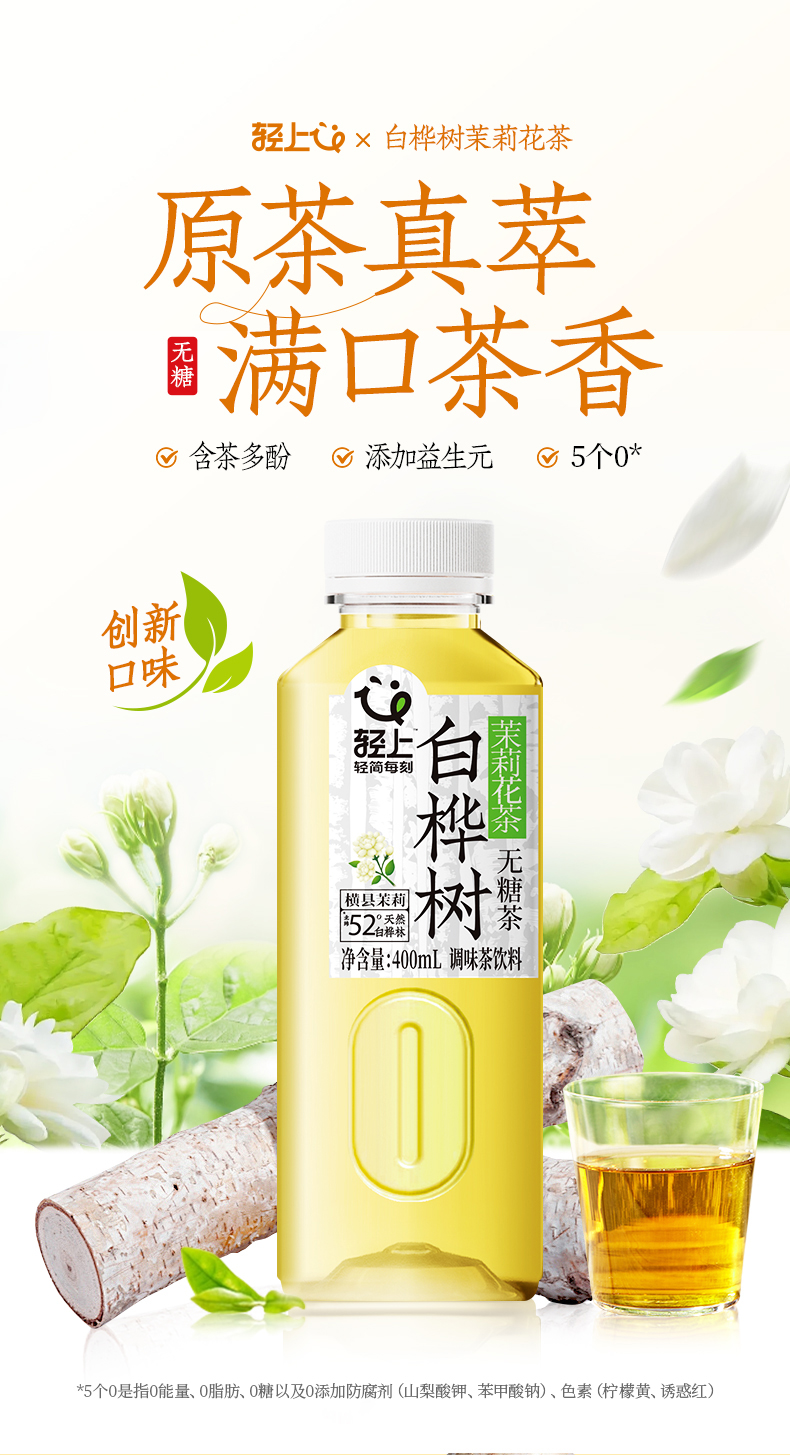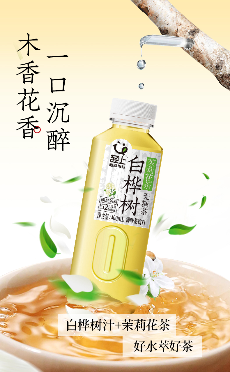 轻上白桦树茉莉花茶无糖茶饮品原茶真萃健康清爽400ml