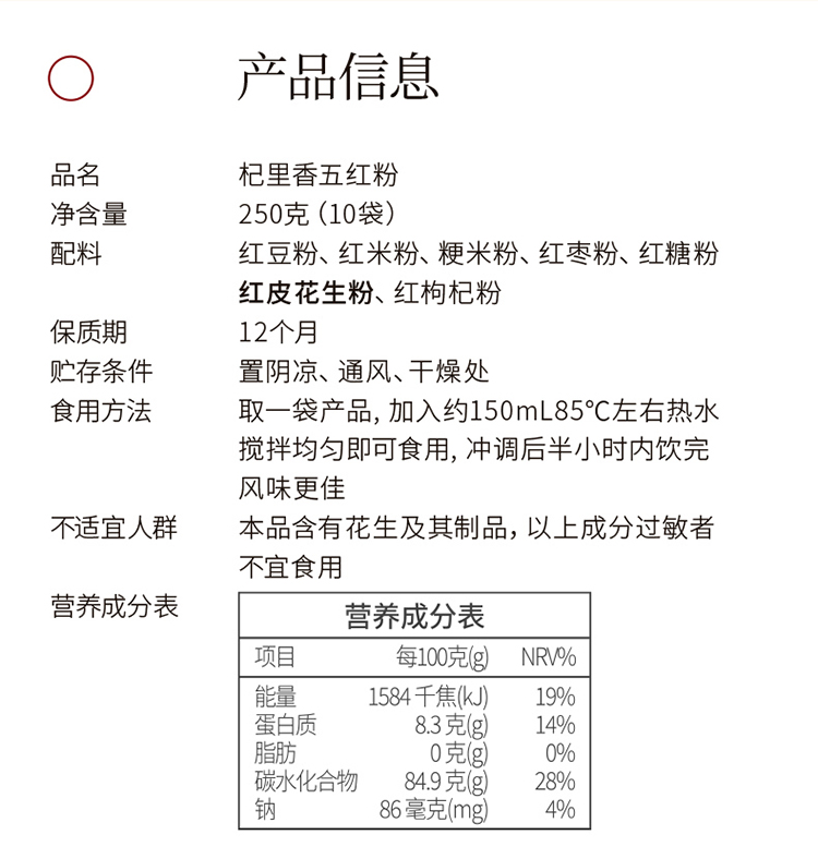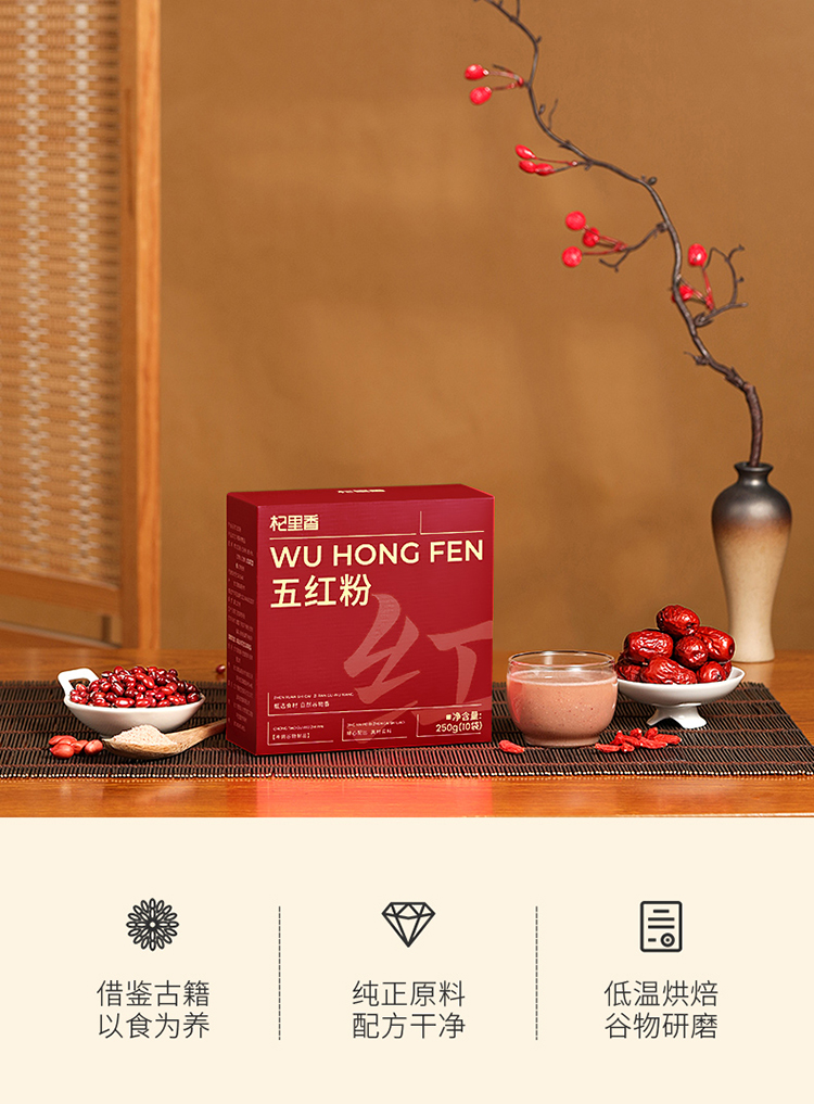【冬季滋补】杞里香250g盒装五红粉;红豆粉、红米粉、粳米粉、红枣粉、红糖粉、红皮花生粉、红枸杞粉10秒快速早餐,香醇口感,营养早餐红润有气色