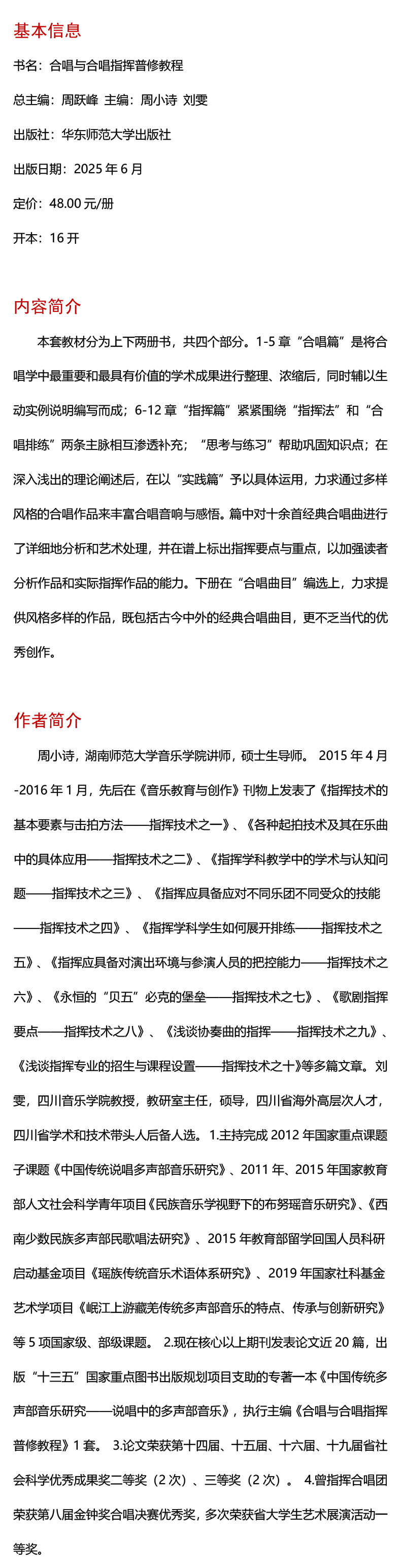 合唱与合唱指挥普修教程 上下册 高等院校音乐通用教材
