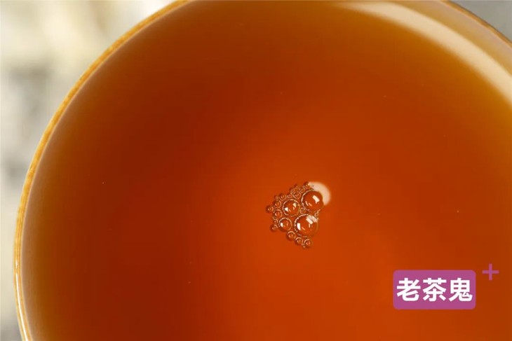 汤质酽厚,呈深栗红色,杯底留香为幽雅蜜兰香。