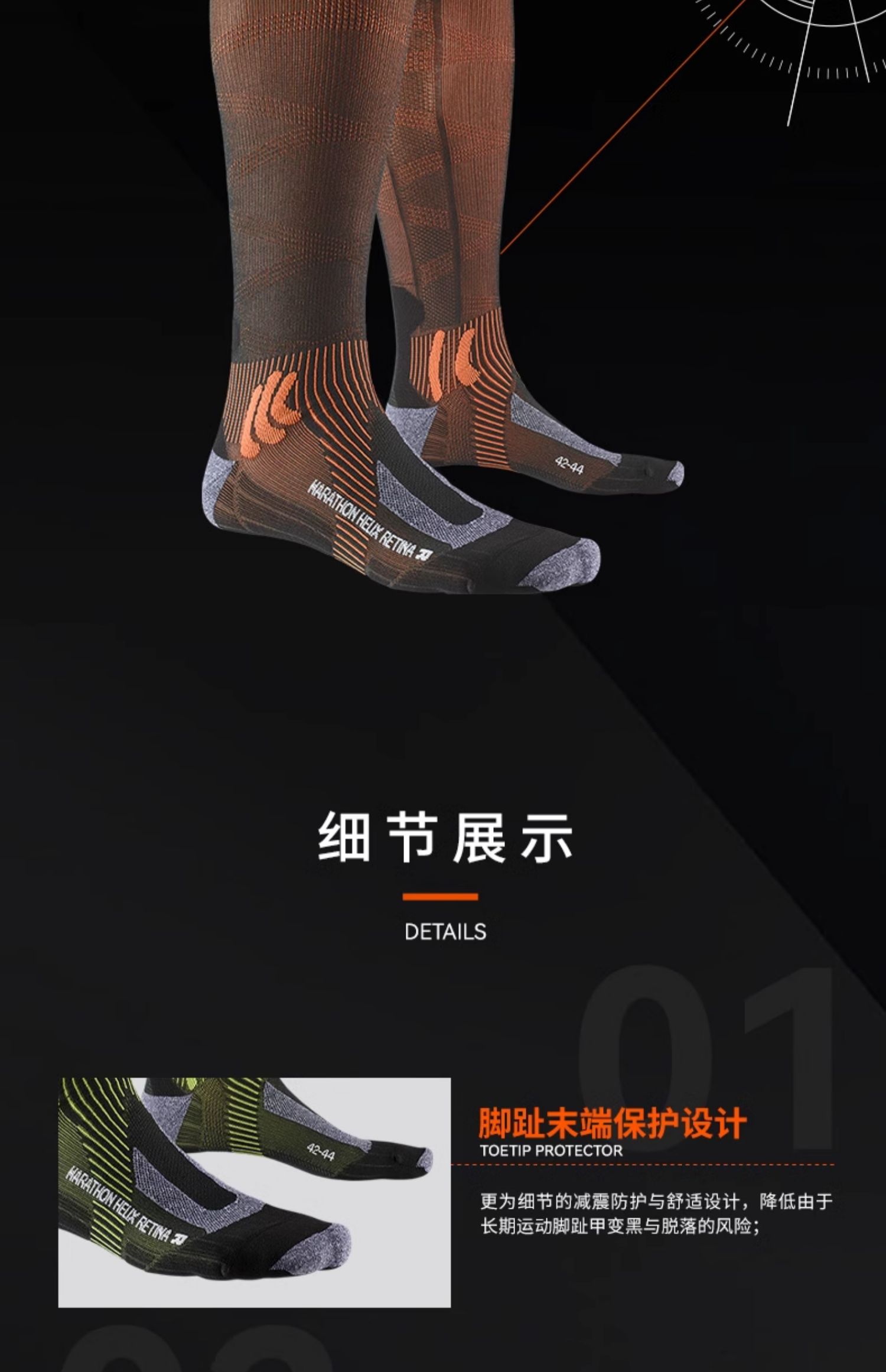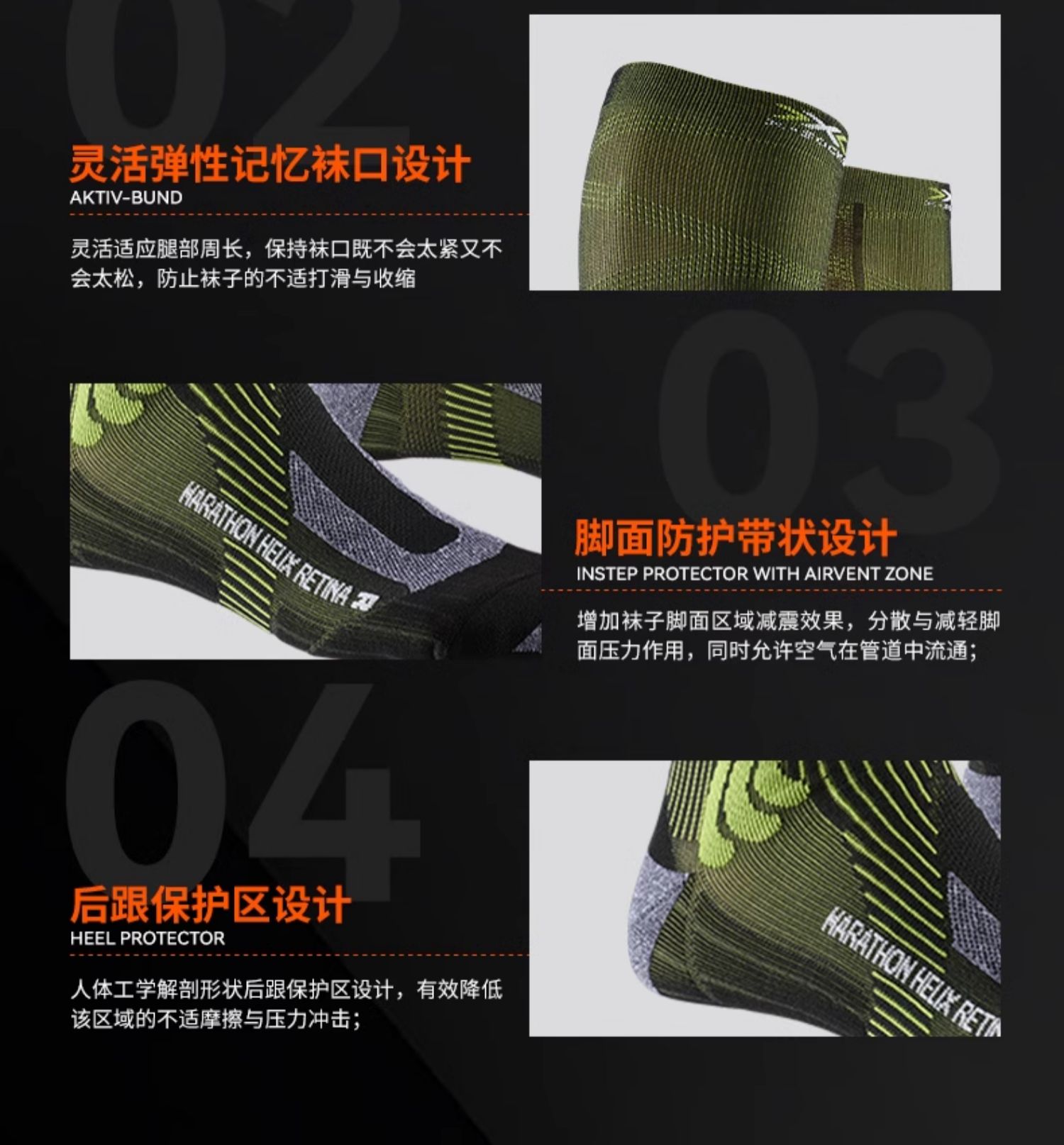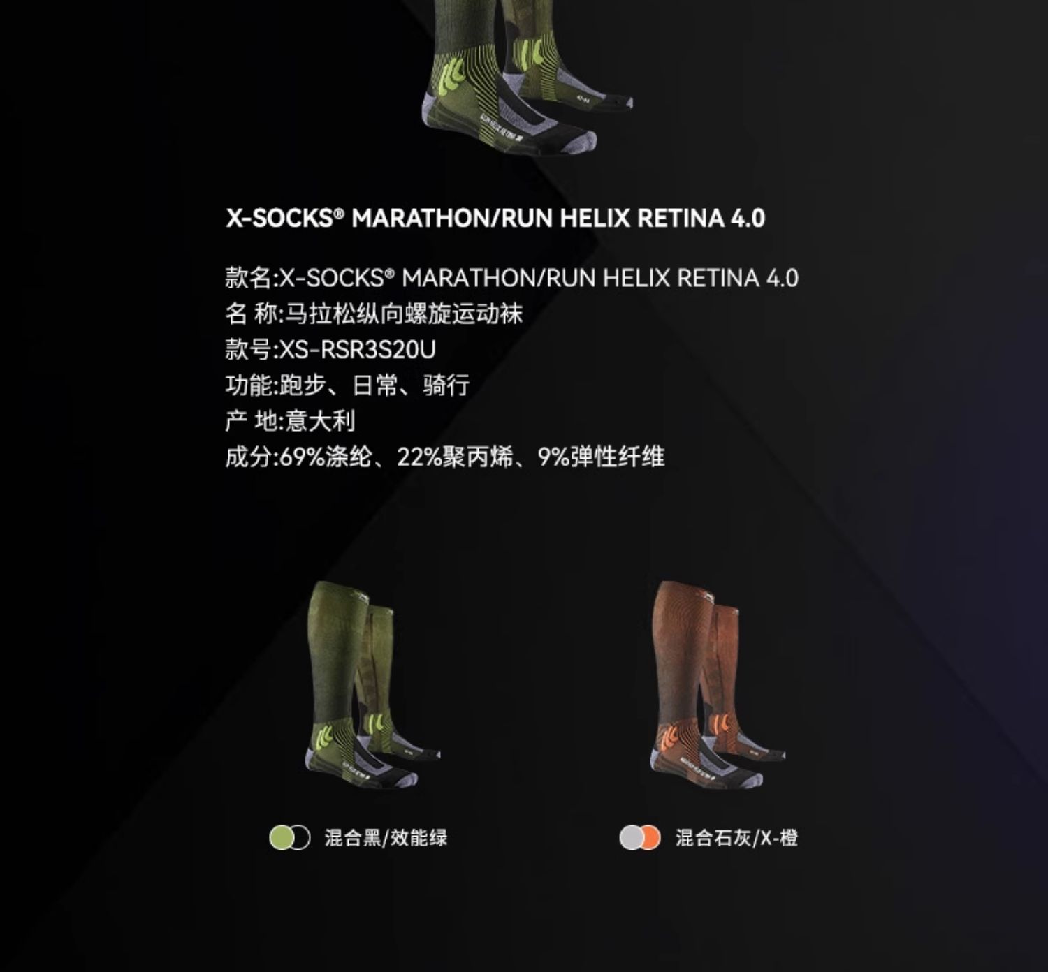 XBIONIC 跑步螺纹运动袜(视网膜科技)X-SOCKS XS-RSXXS20U
