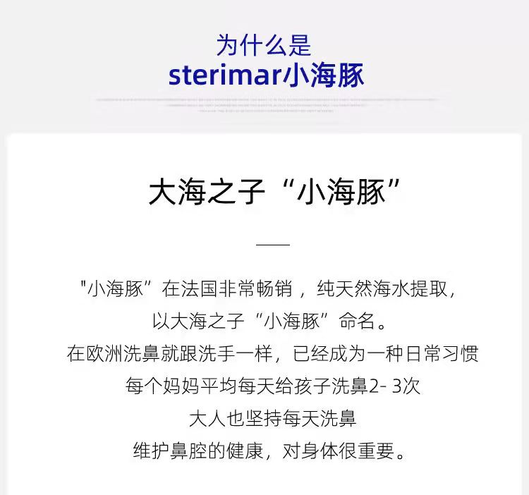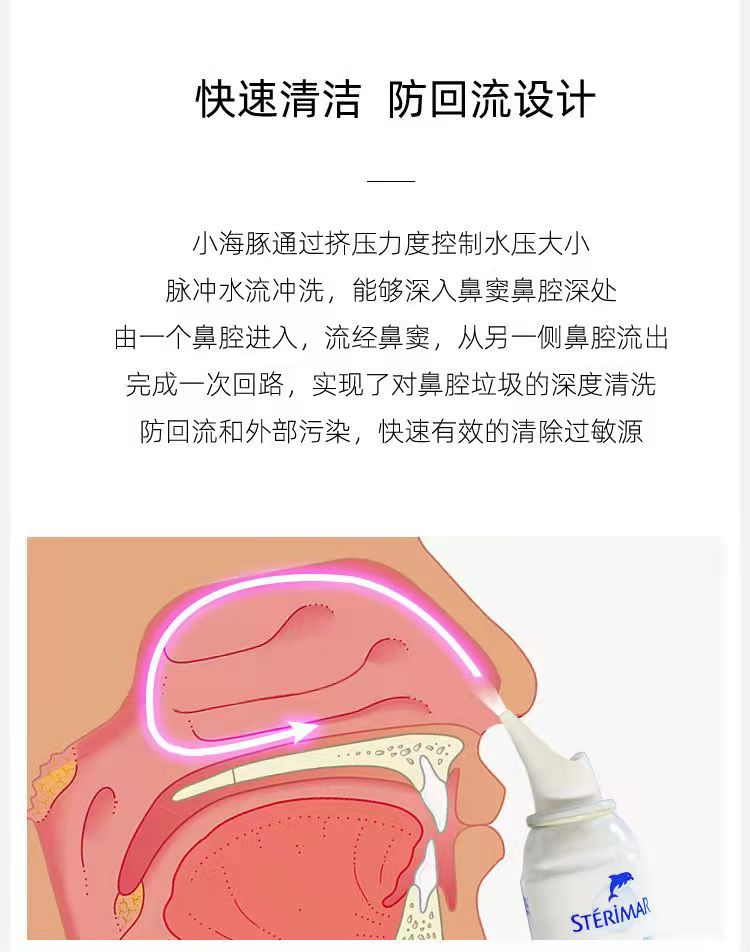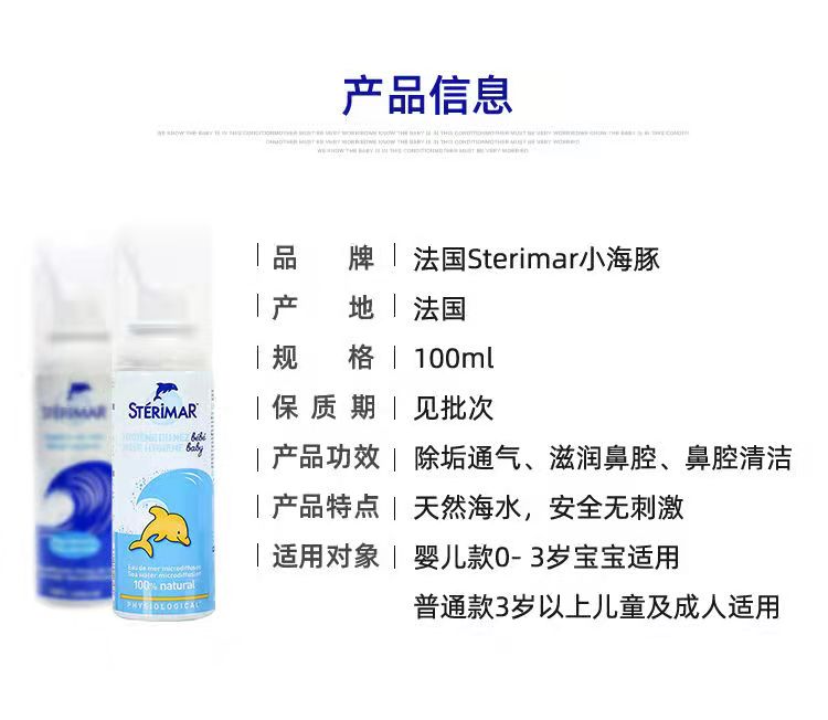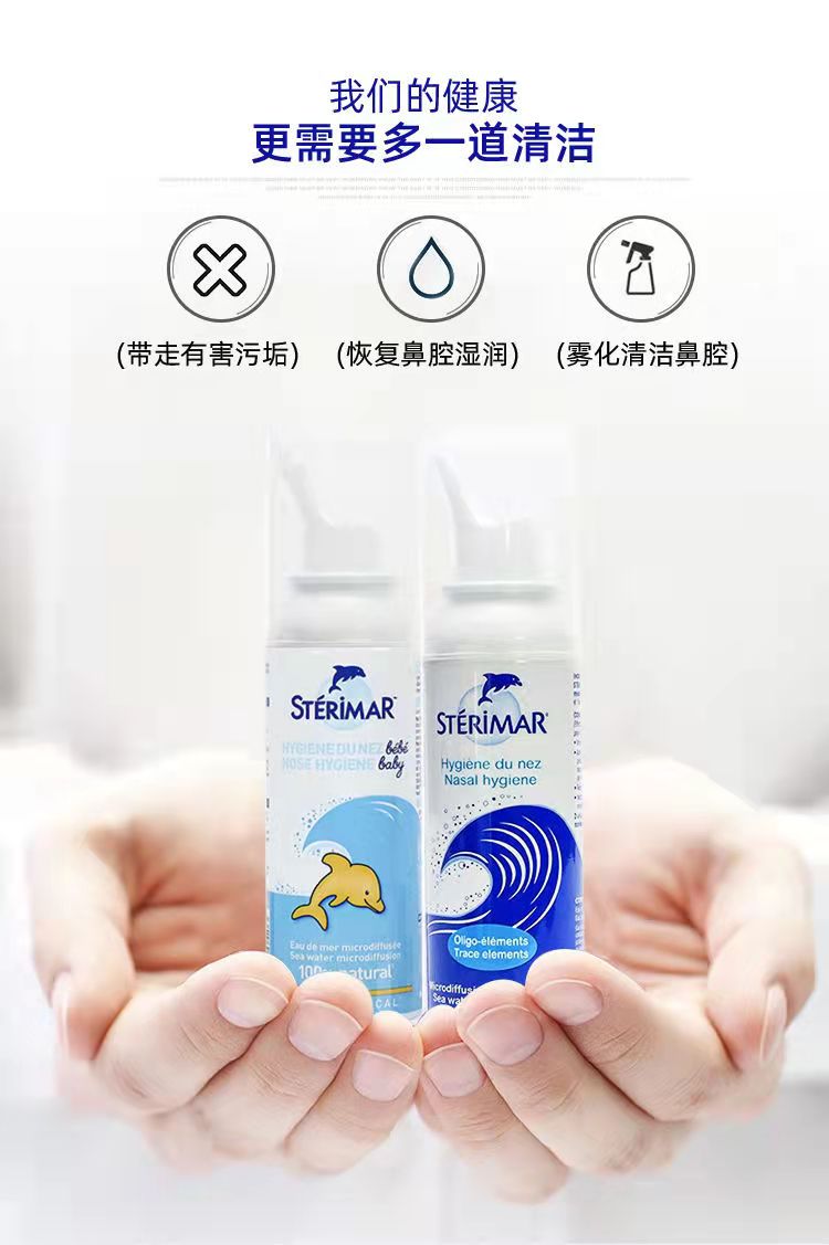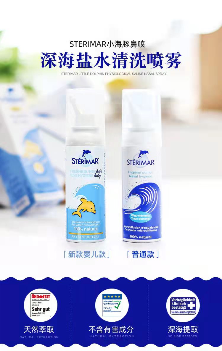 【一般贸易】法国进口STERIMAR舒德尔玛小海豚鼻喷婴儿童成人鼻腔喷雾海盐水洗鼻水100ml