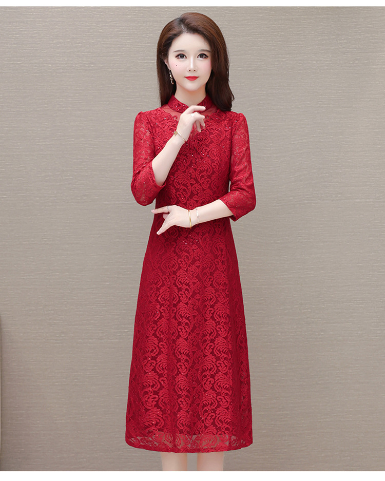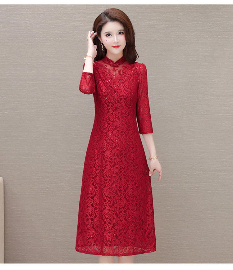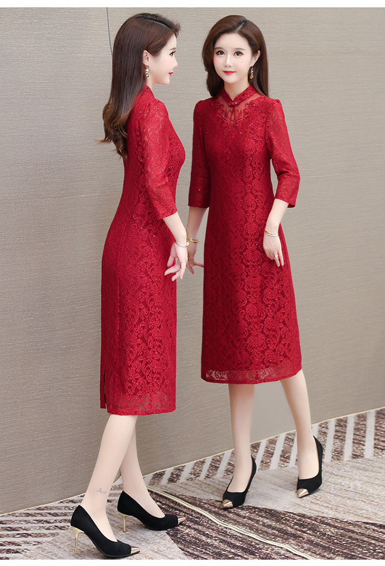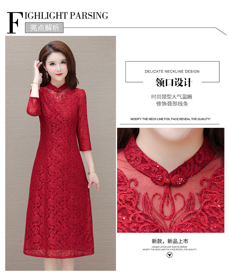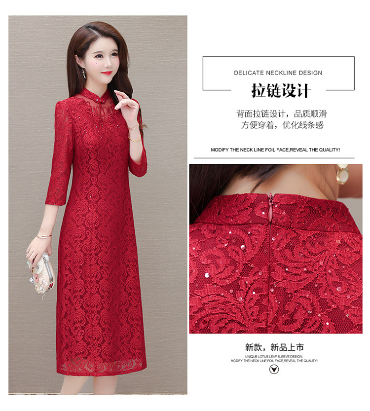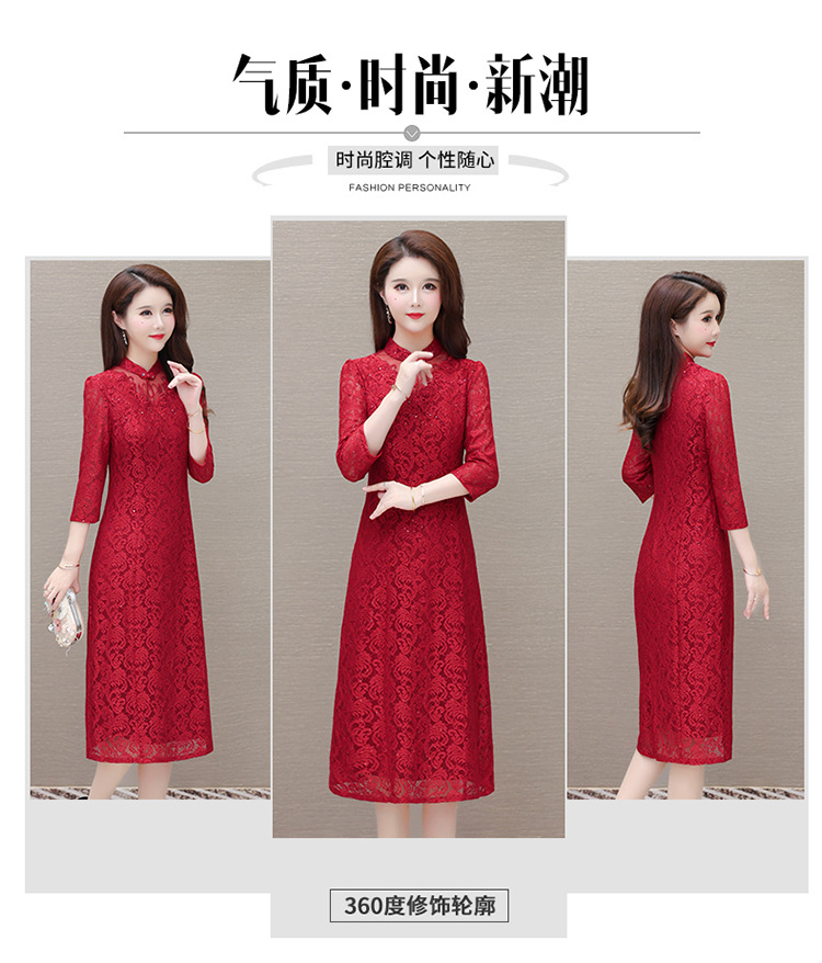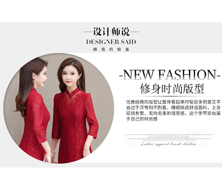 QYM HJY9781-1-Y复古连衣裙时尚旗袍裙蕾丝裙 商品图2