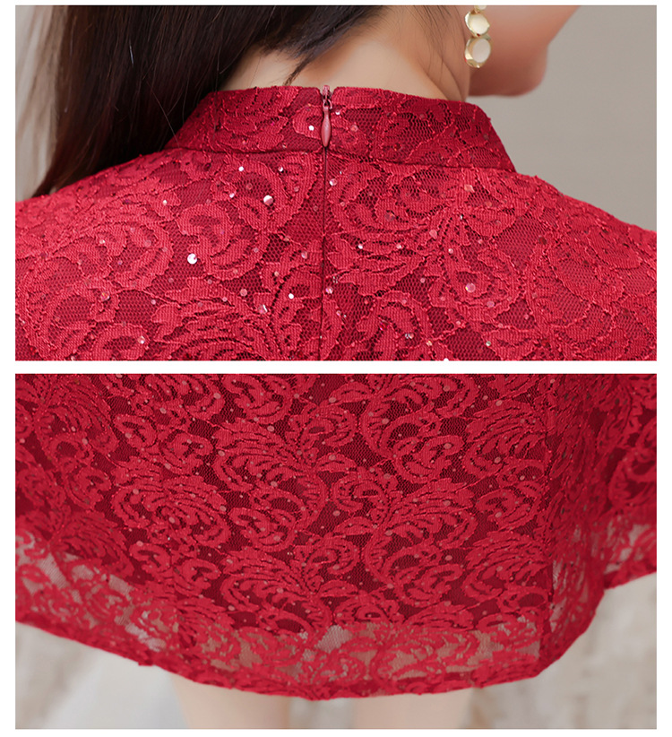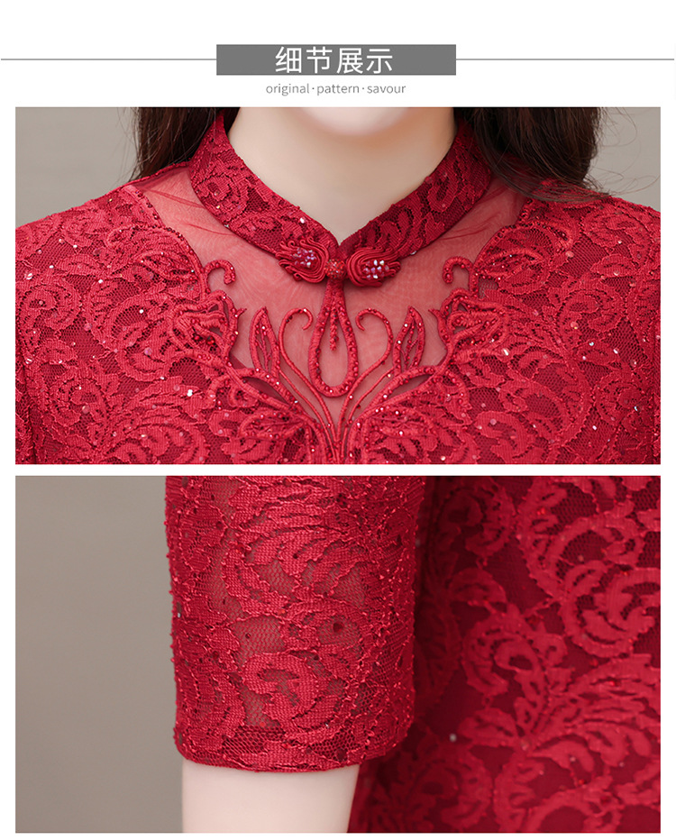QYM HJY9781-1-Y复古连衣裙时尚旗袍裙蕾丝裙 商品图3