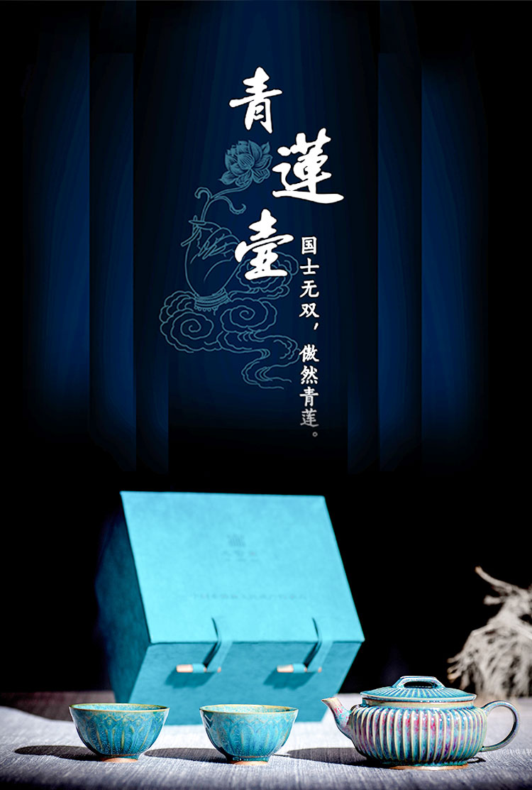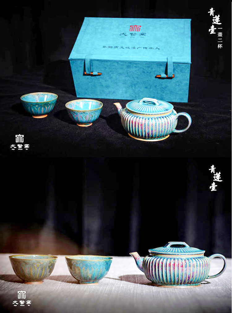 神垕钧瓷大贤窑于大鹏青莲壶礼盒套装