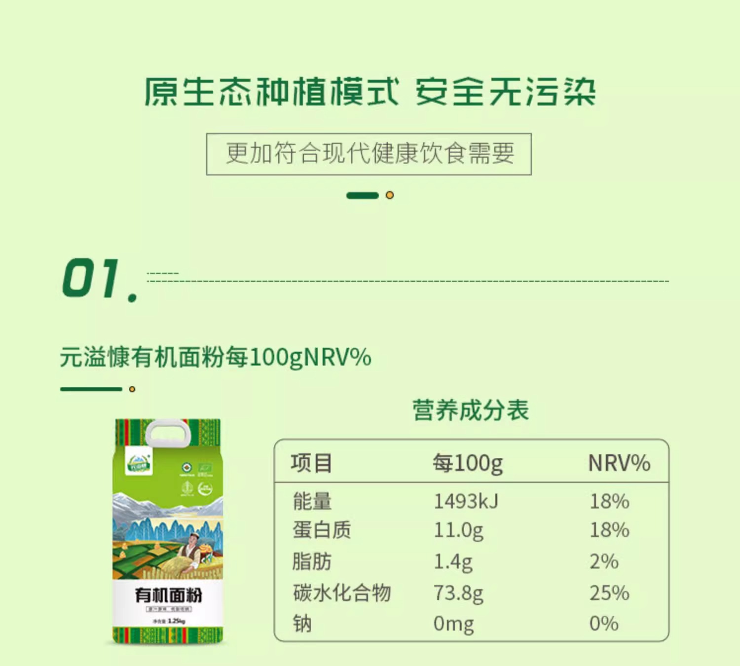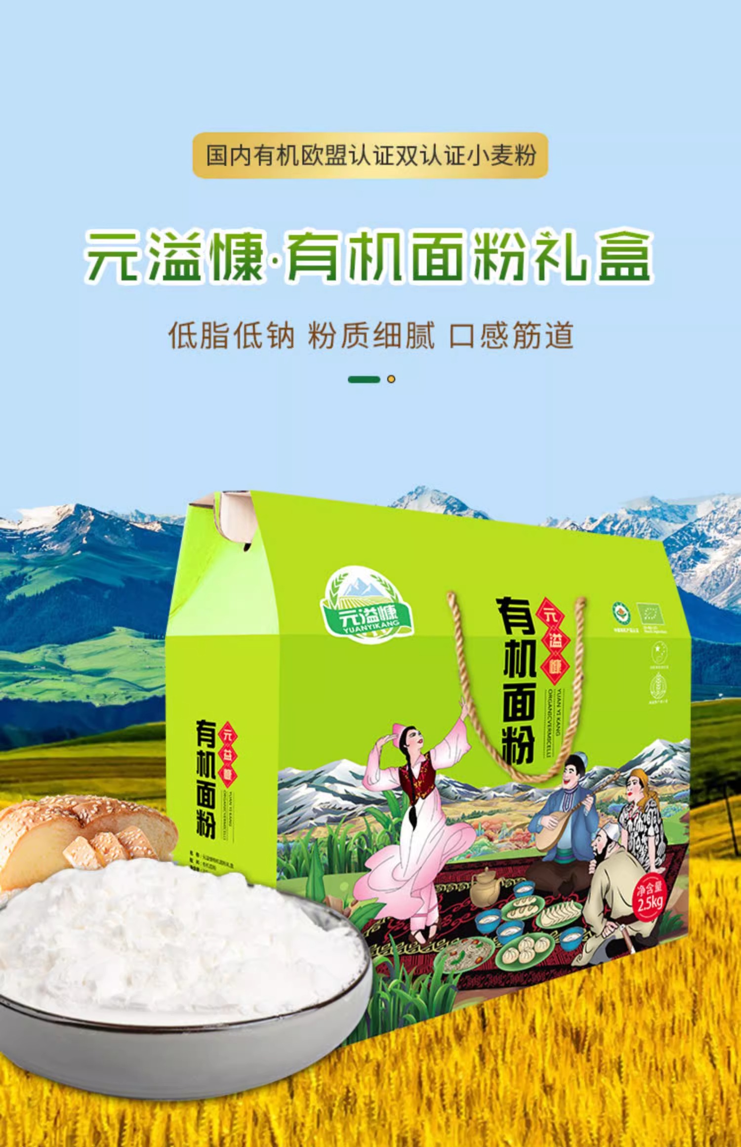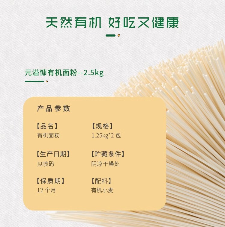 元溢慷·有机面粉礼盒( 1.25kg有机面粉*2)2500g 国内有机欧盟认证双认证小麦粉