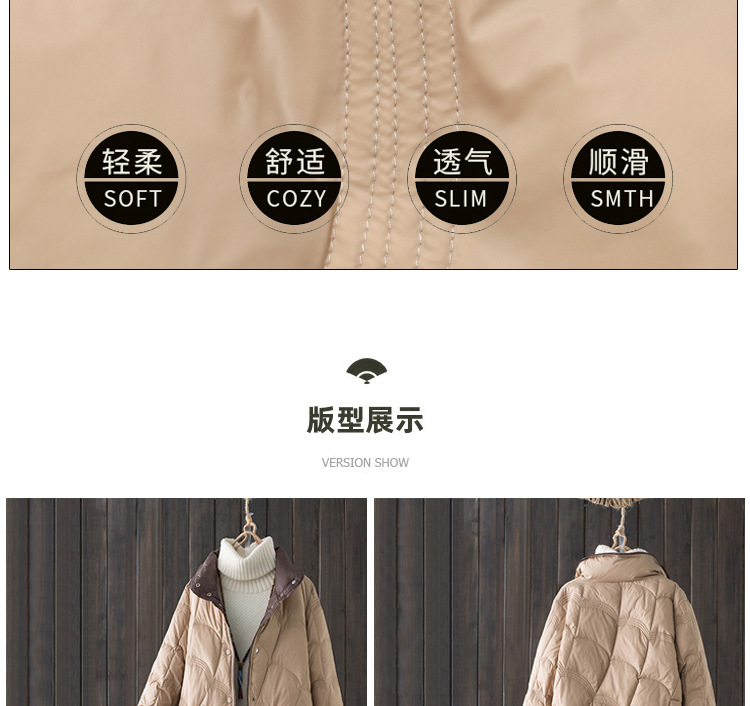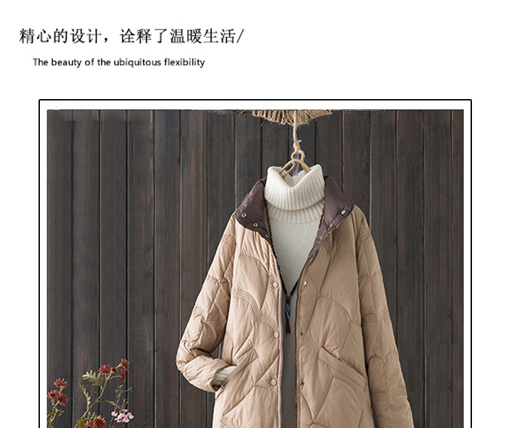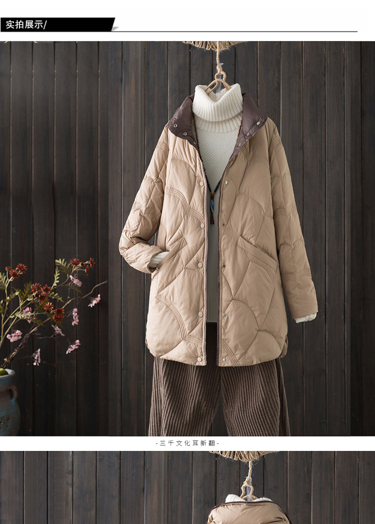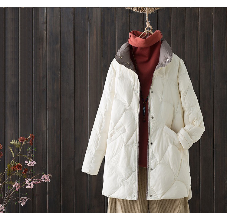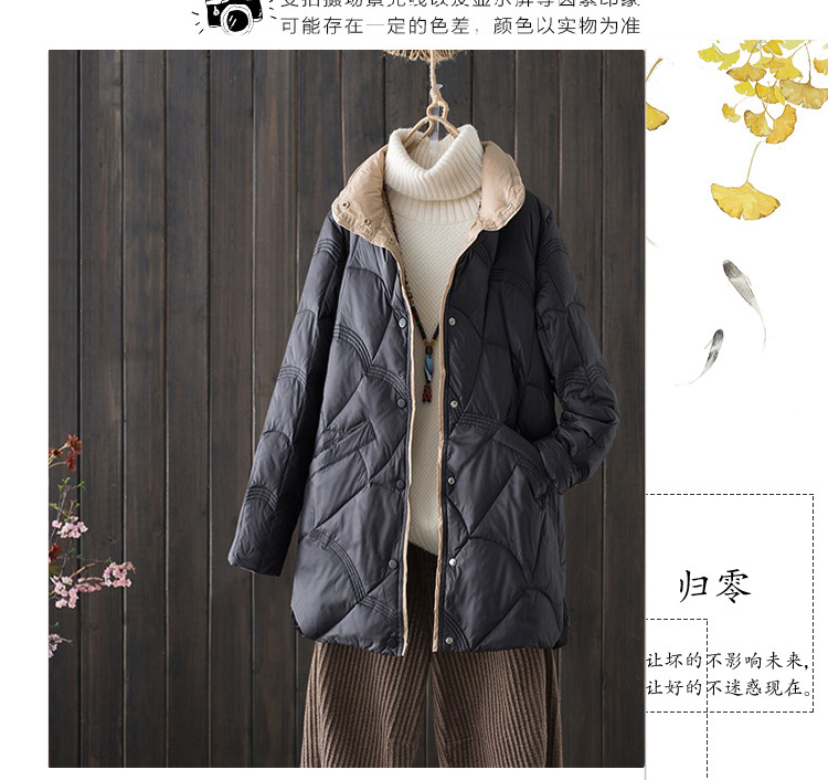 跨境秋冬轻薄款羽绒服女中长款白鸭绒时尚洋气复古祥云立领外套潮