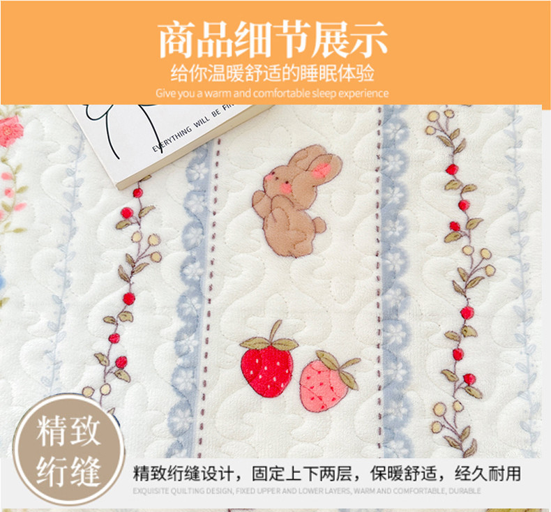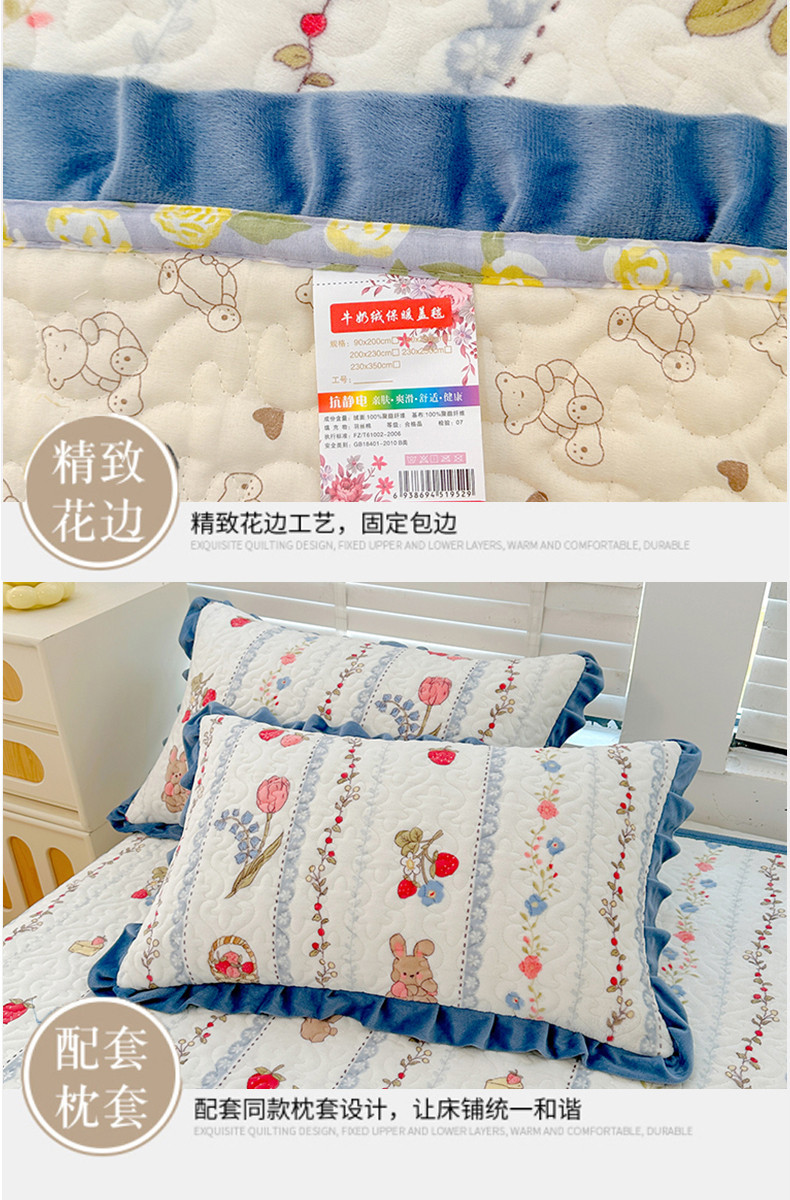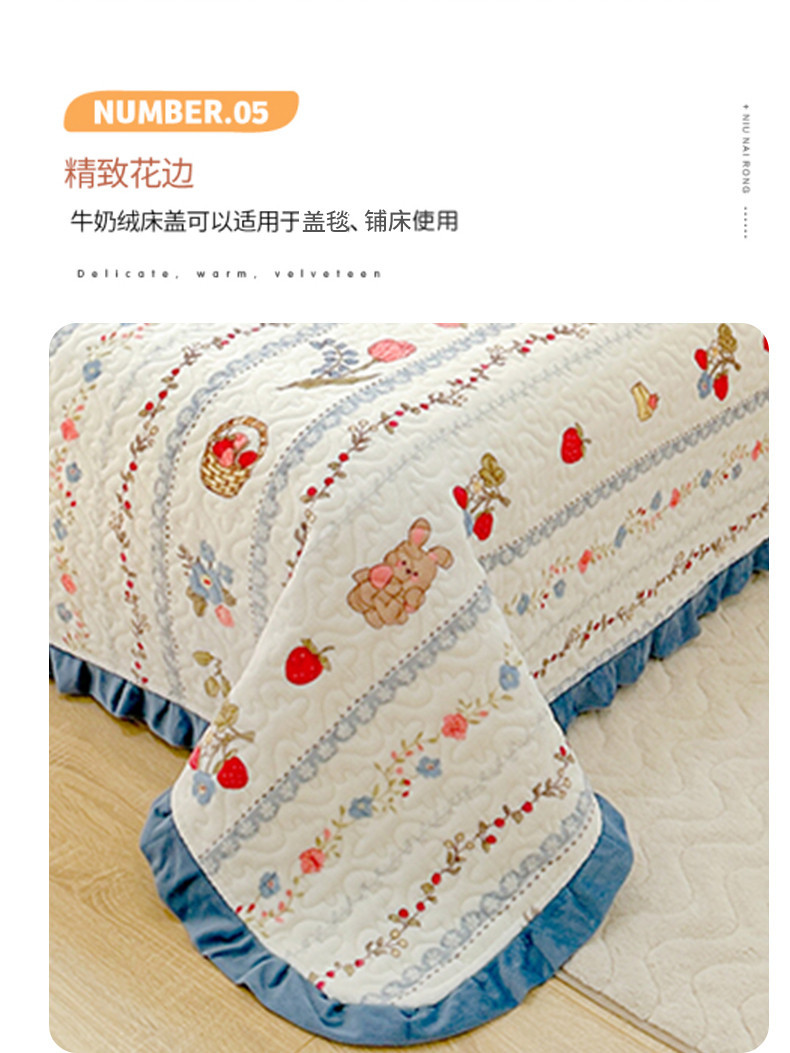 【牛奶绒床盖,温暖你生活の花边床单~】冬季新款牛奶绒宝宝绒床盖三件套 夹棉绗缝小花边 加厚保暖床上用品-QQ