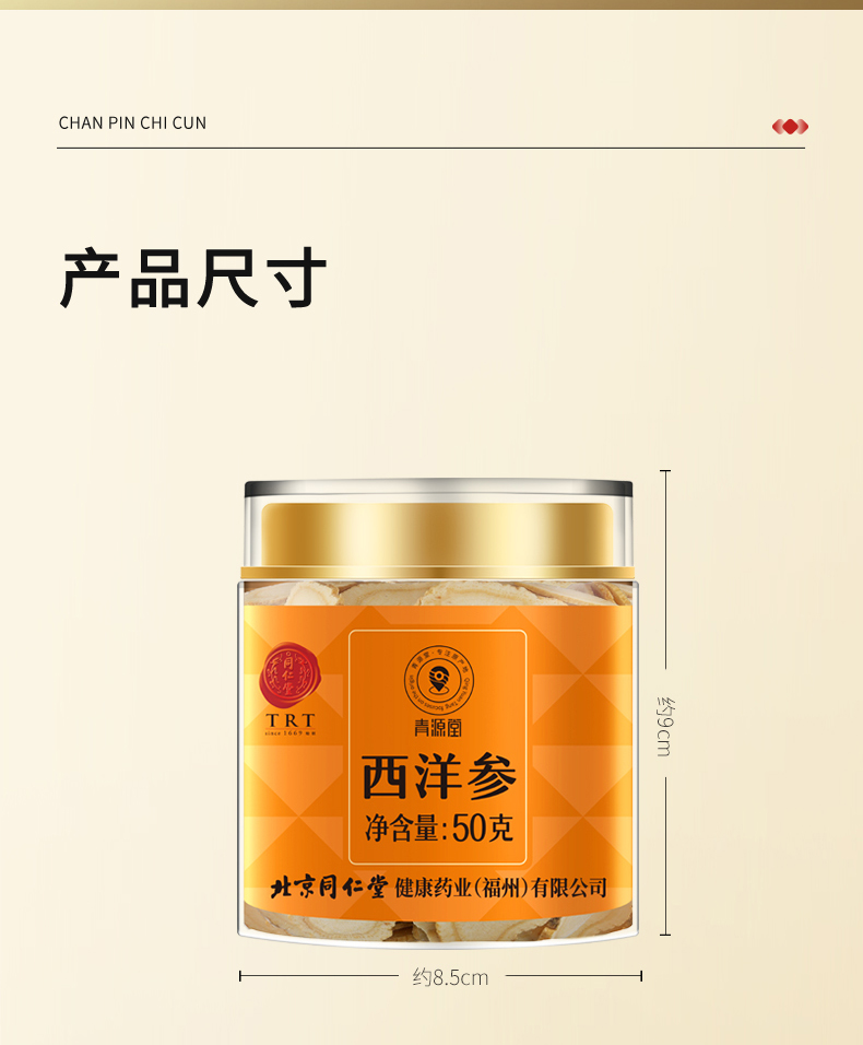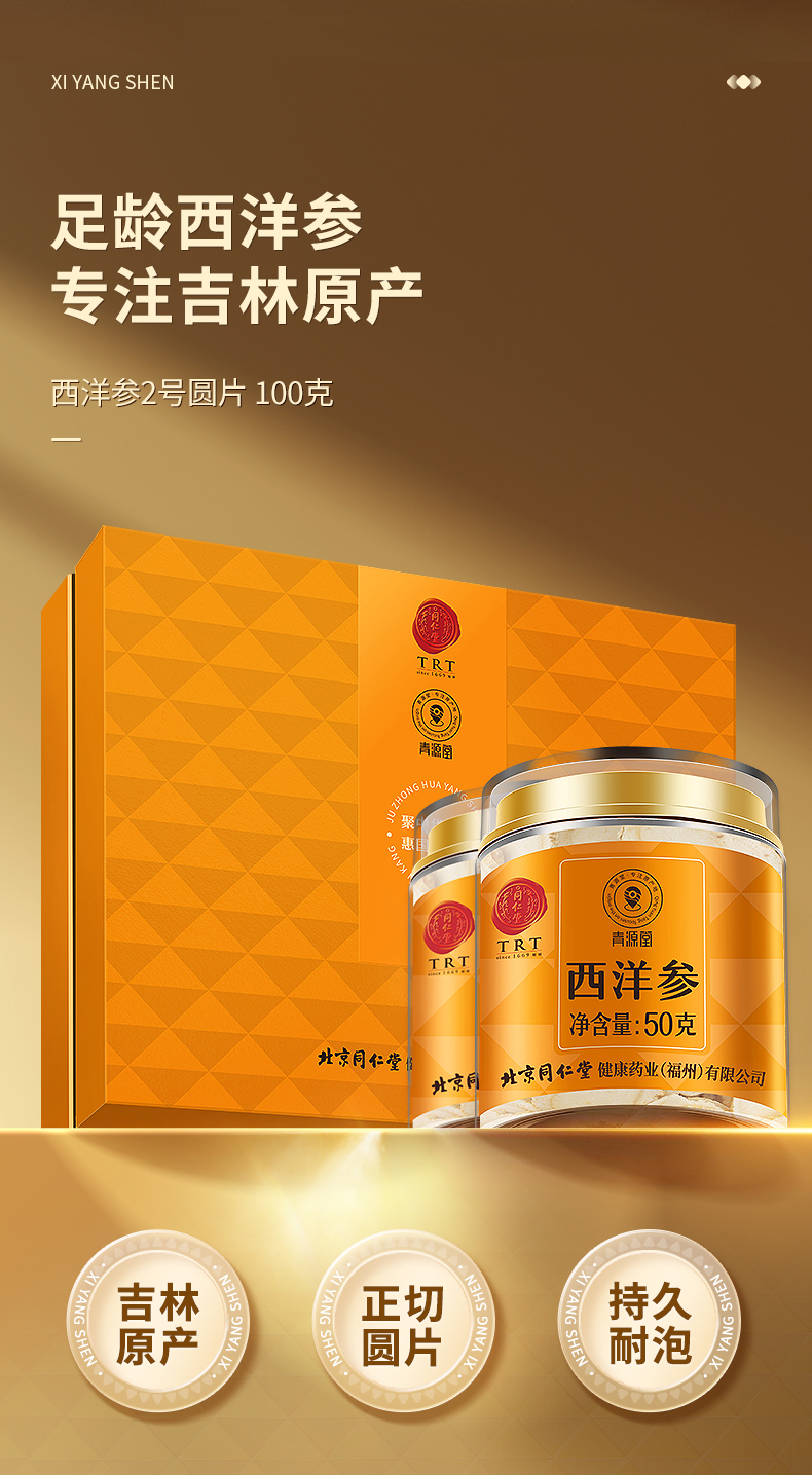 【正宗同仁堂品牌】北京同仁堂 青源堂 国产西洋参100克礼盒(50g*2瓶)约1.4-1.6cm西洋参片 主根精华 片片精选SY