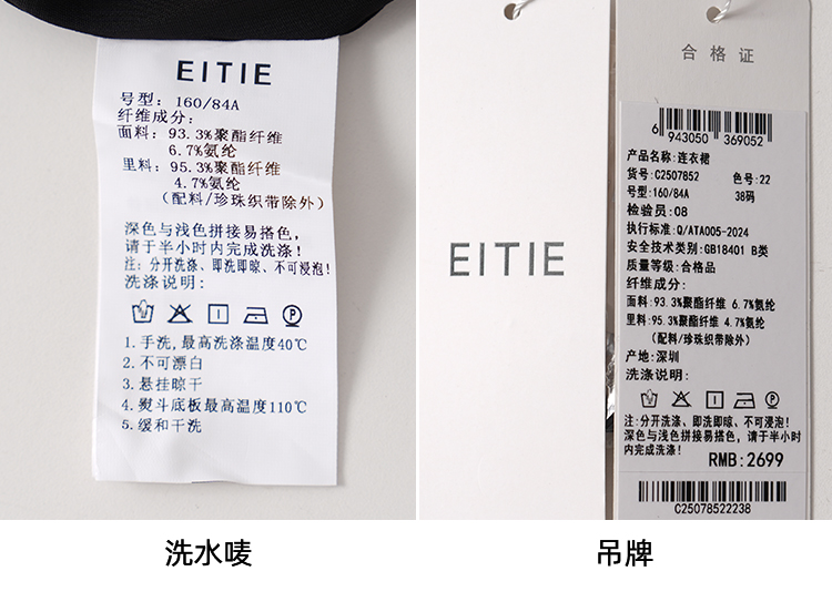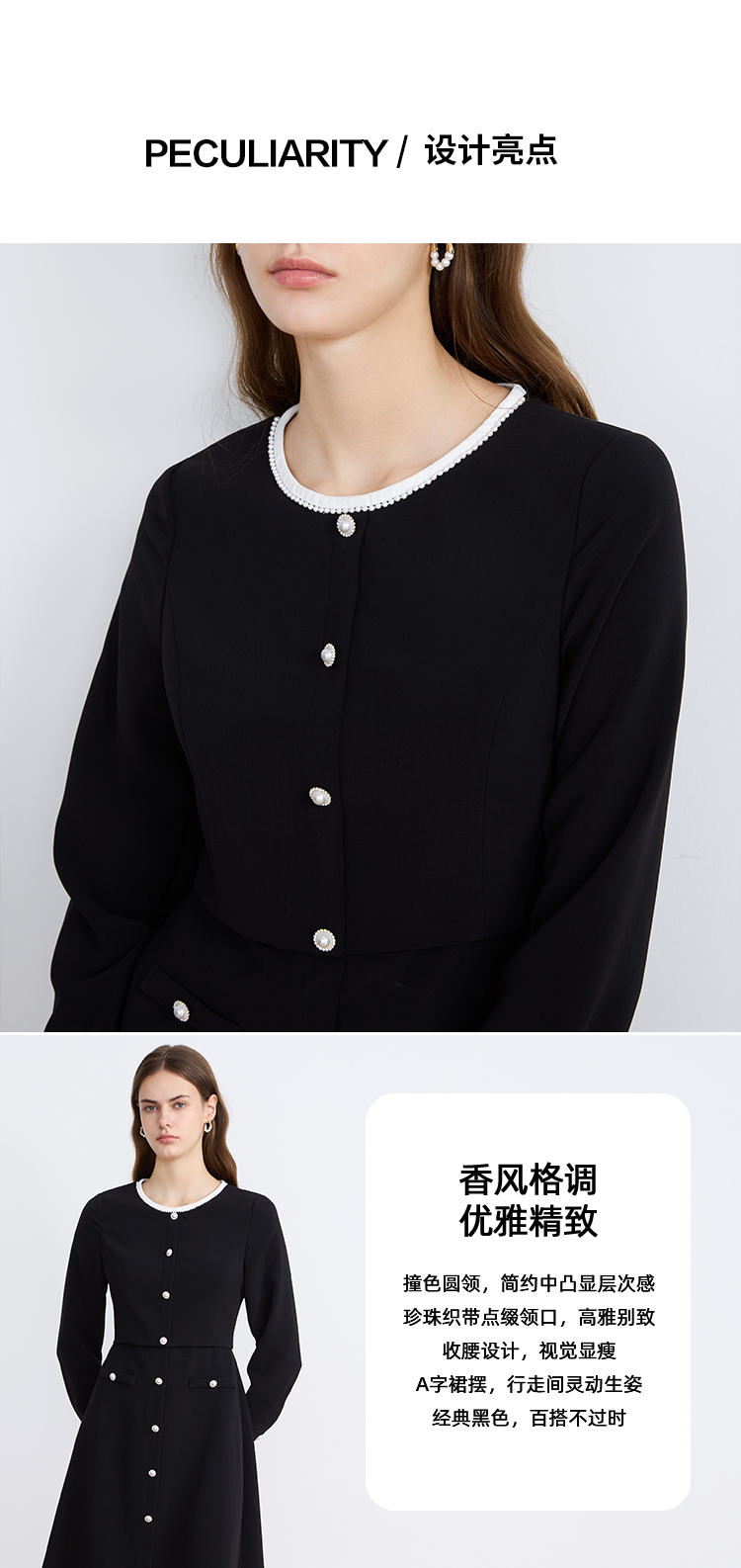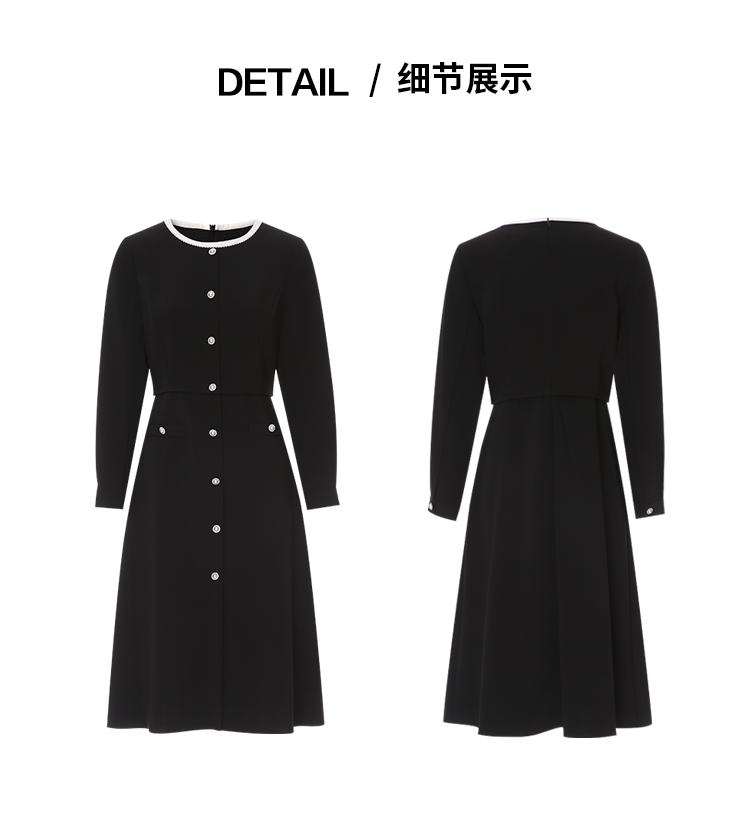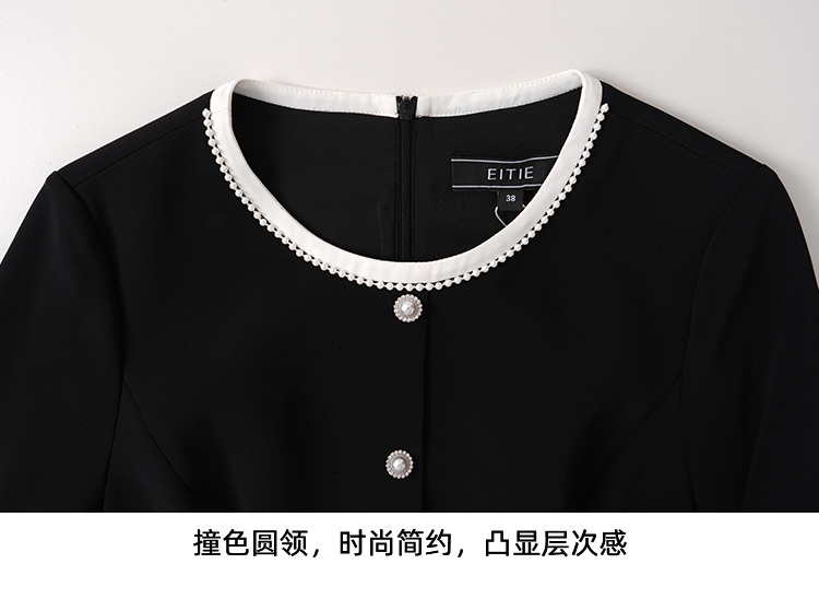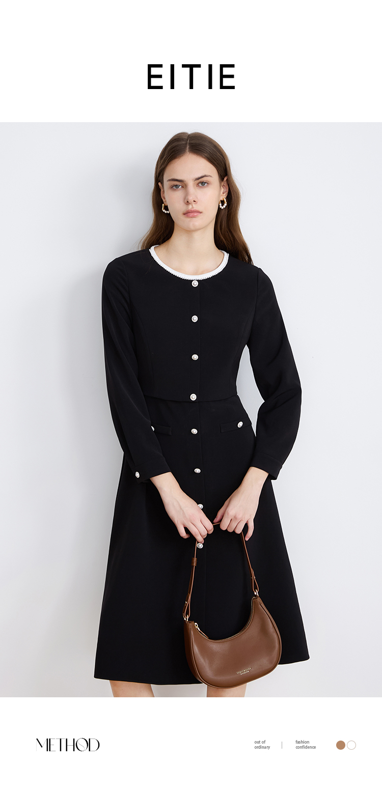 EITIE爱特爱高级感小香风气质撞色珍珠收腰a字秋季新款连衣裙C2507852