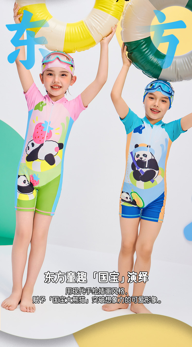 【年衣】2025年夏季新款高颜值卡通女孩短袖泳装防晒活力盼达泳装