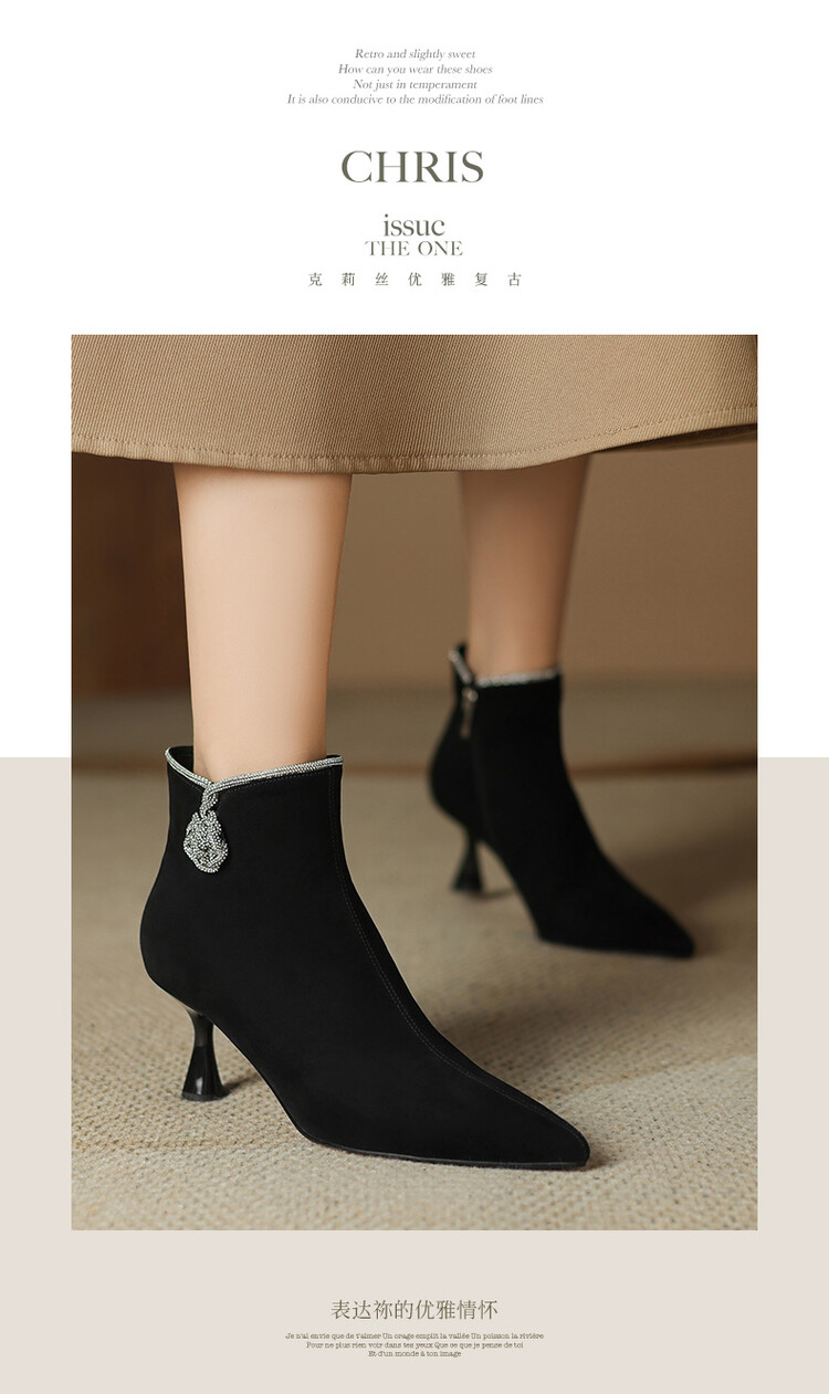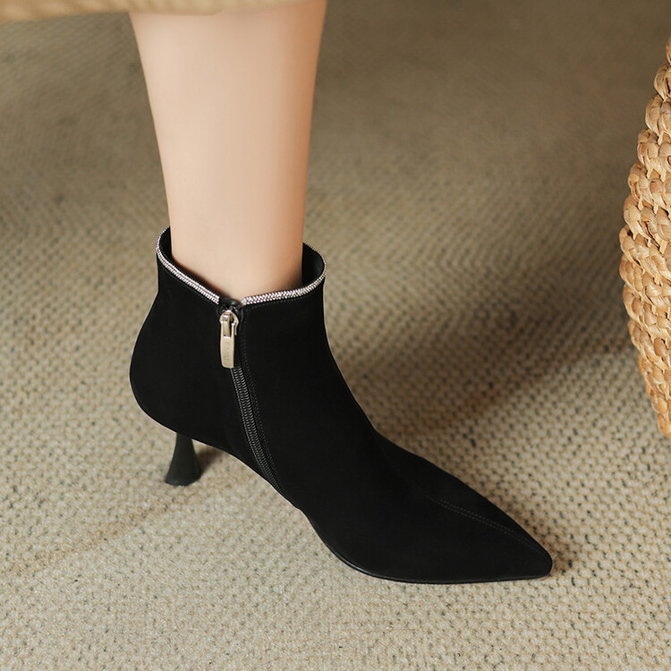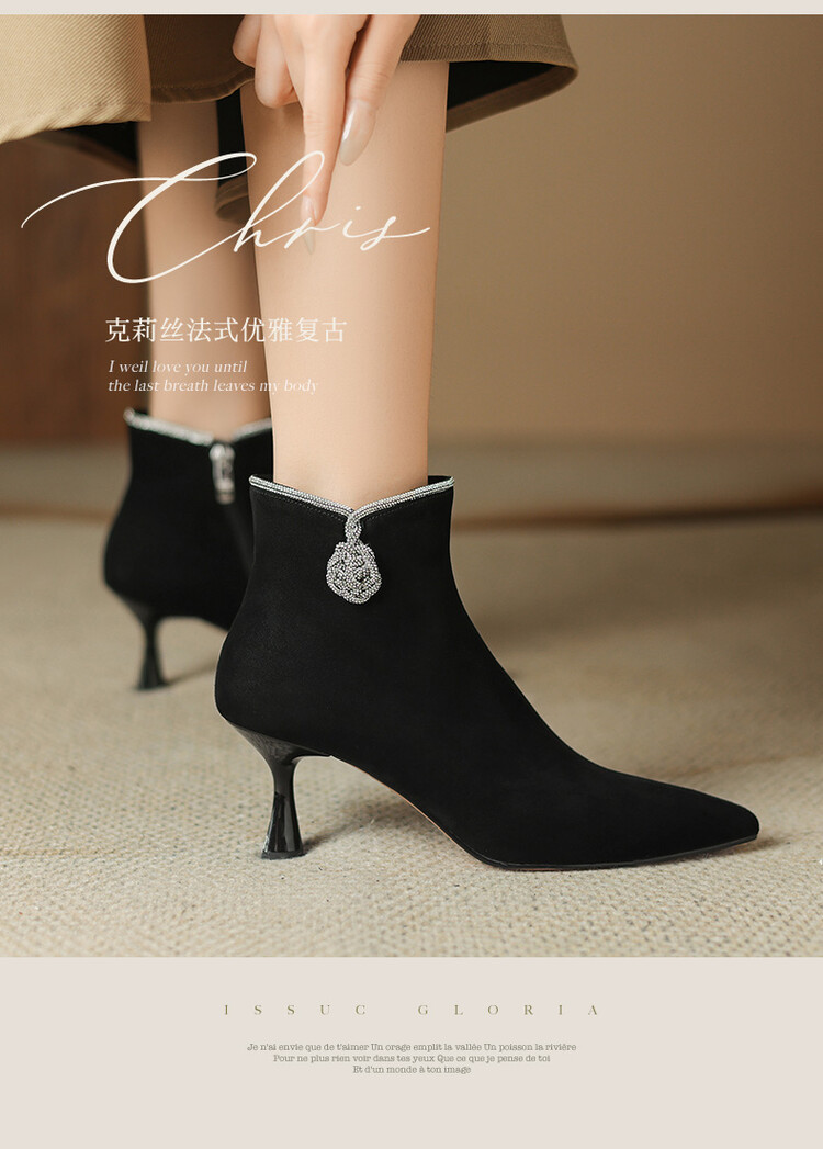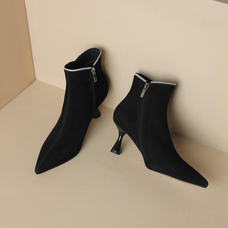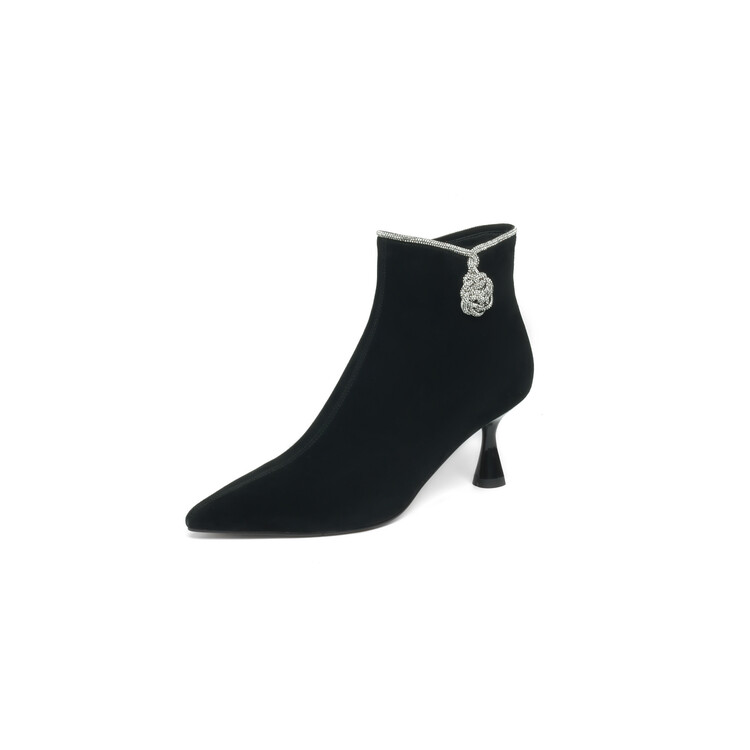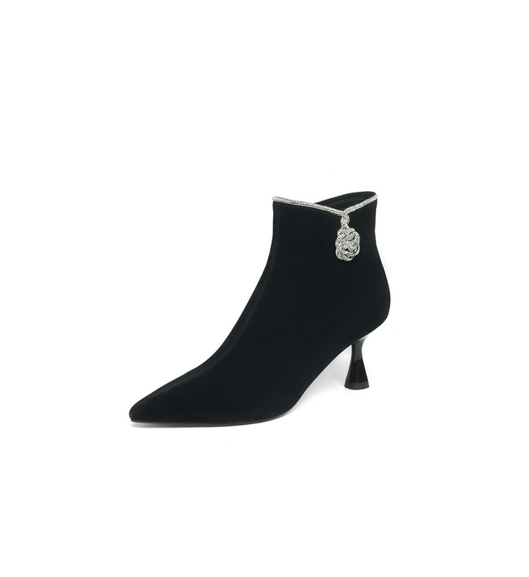 气质通勤短靴,尖头细跟高跟黑色裸靴HCYYHD-5029